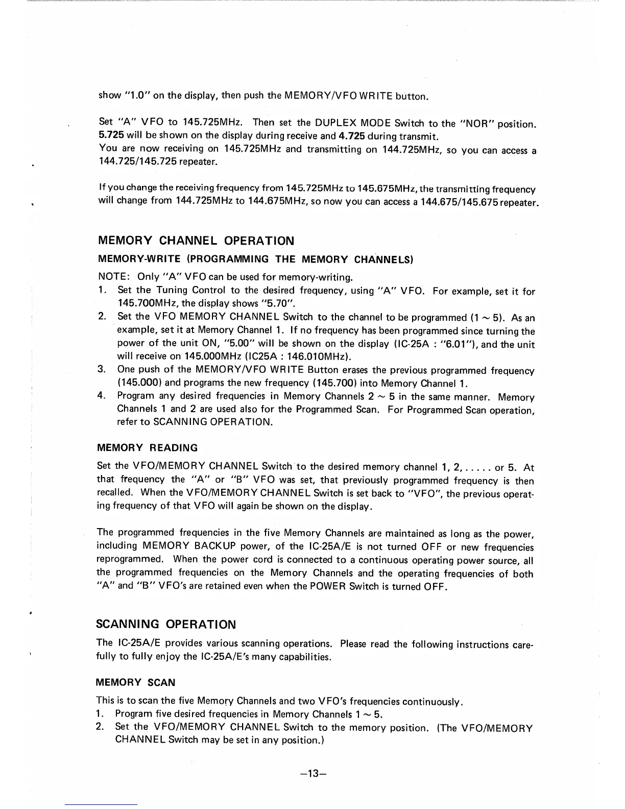 Icom IC-25E - Scanning Operations Introduction