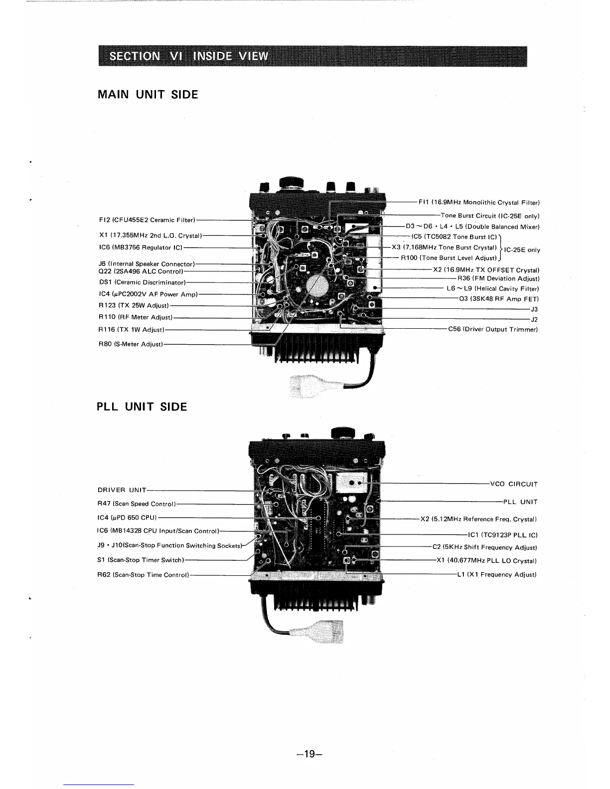 Icom IC-25E - SECTION VI INSIDE VIEW; Main and PLL Unit Components Identification