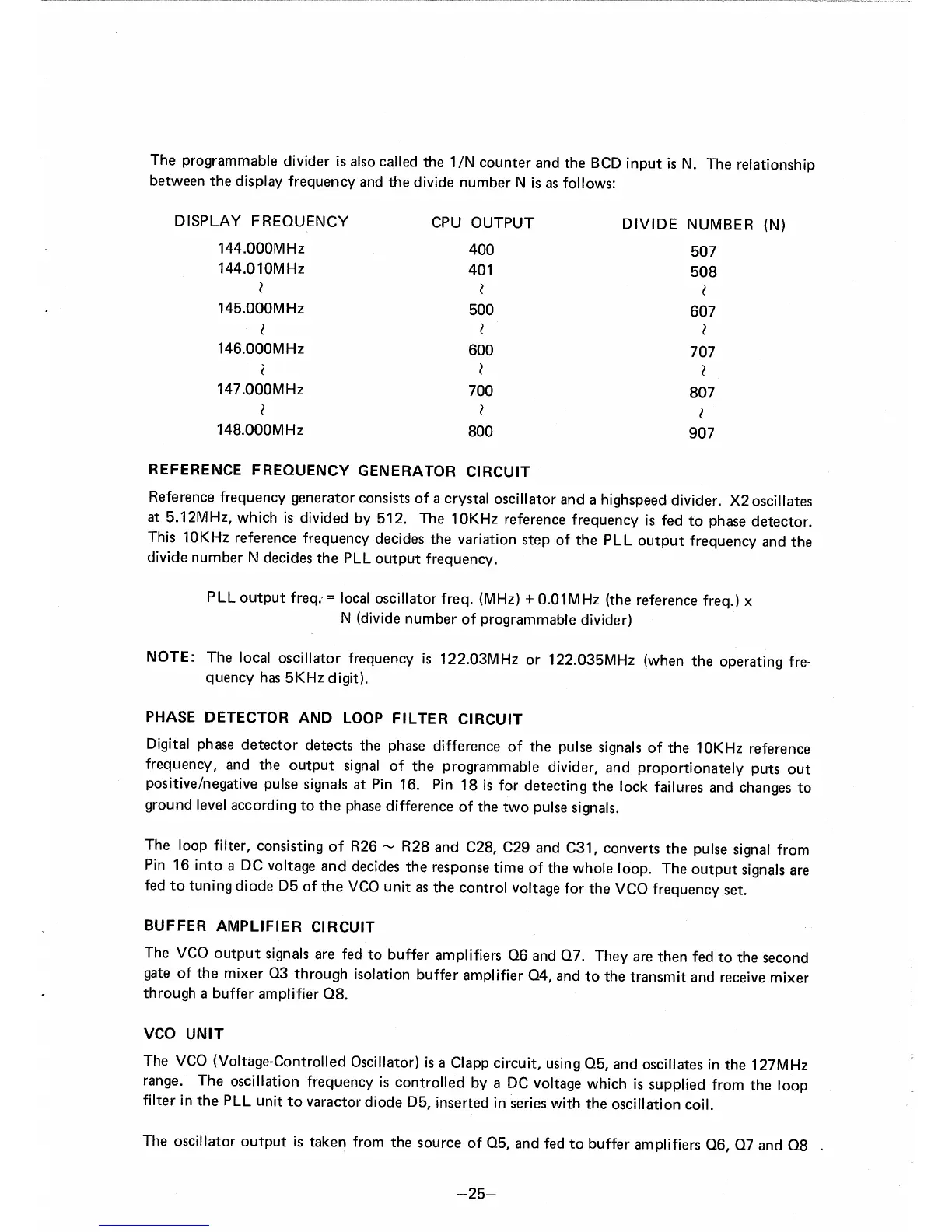 Icom IC-25E - Programmable Divider Circuit Explanation