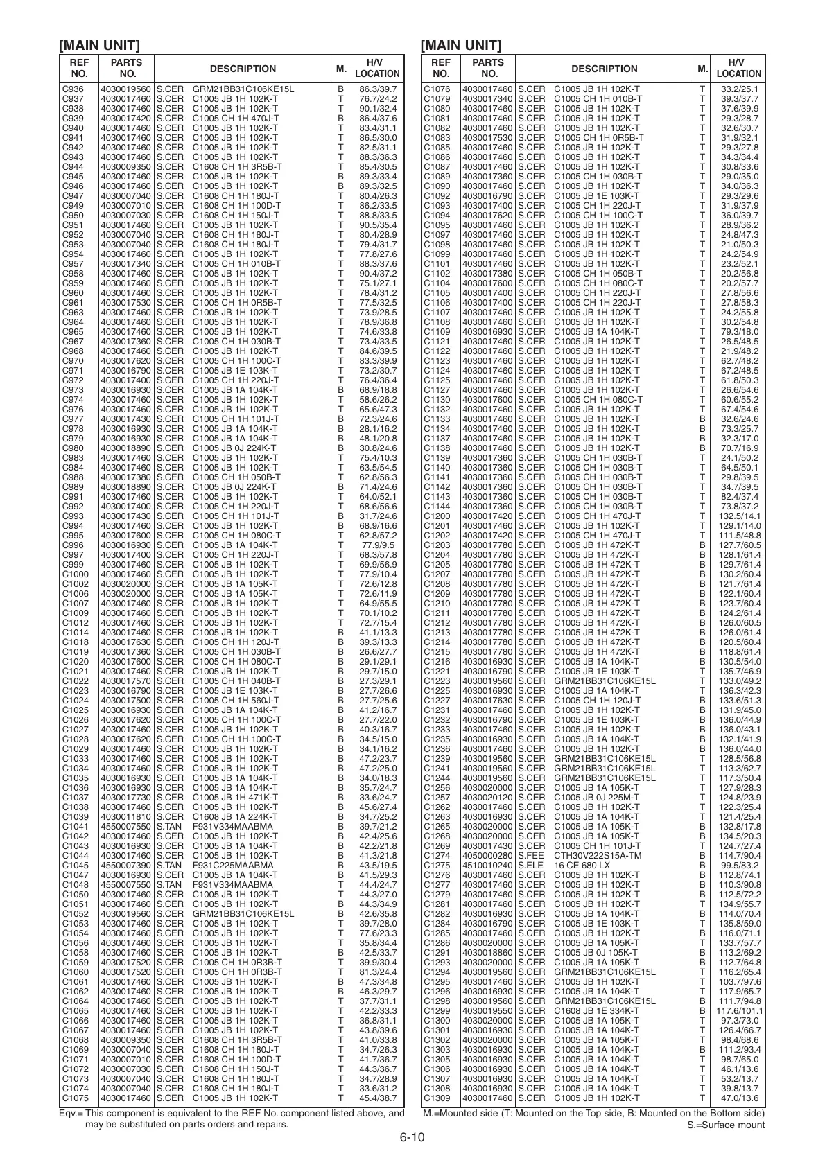 M.=Mounted side (T: Mounted on the Top side, B: Mounted on the Bottom side)