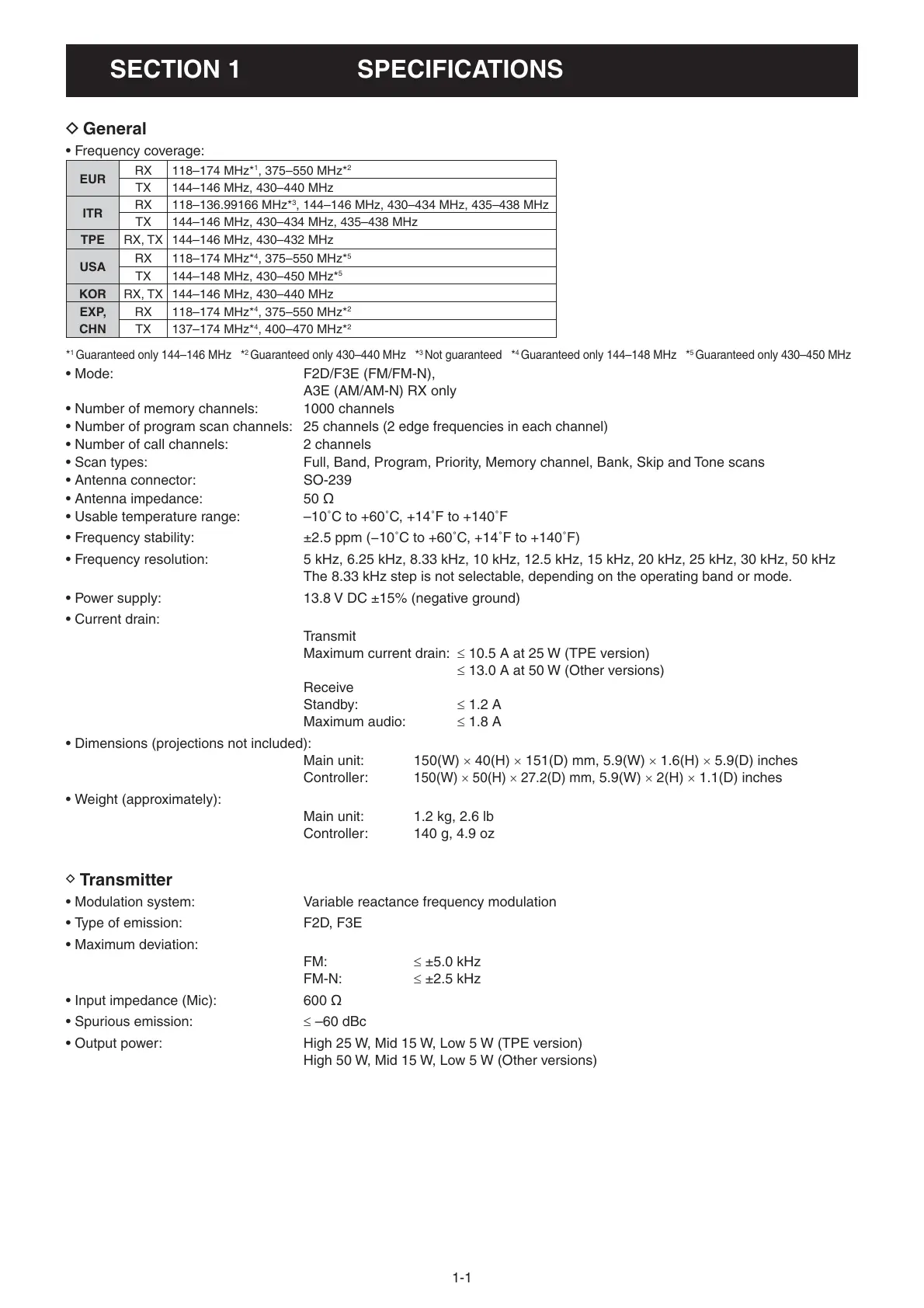 SECTION 1. SPECIFICATIONS