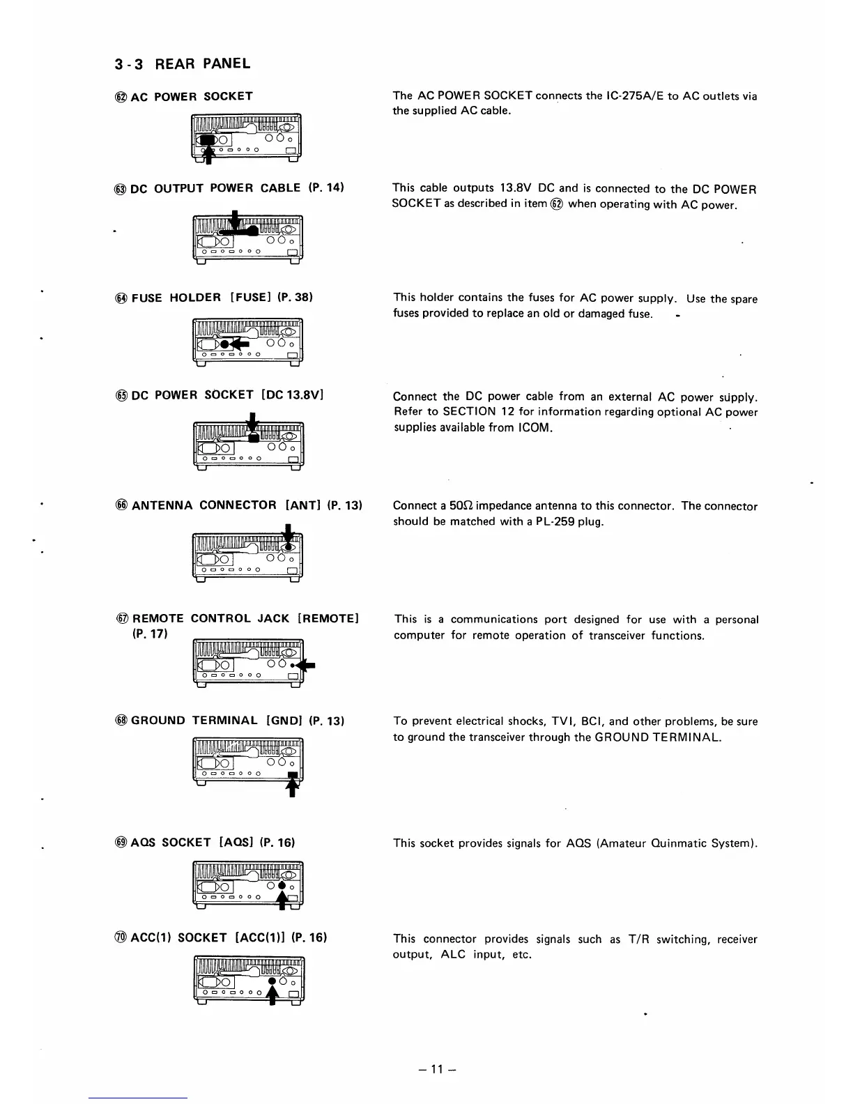 Icom IC-275A - REAR PANEL CONNECTORS AND FUNCTIONS