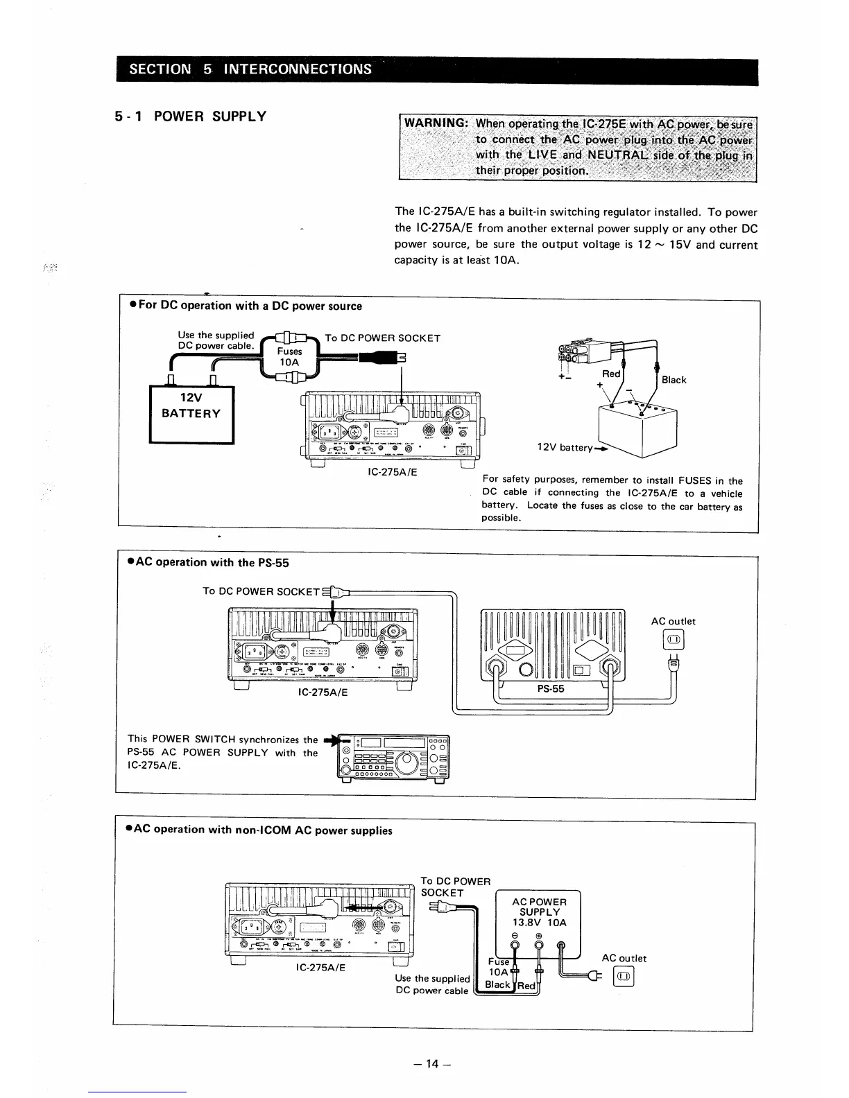 Icom IC-275A - SECTION 5 INTERCONNECTIONS; POWER SUPPLY CONNECTIONS