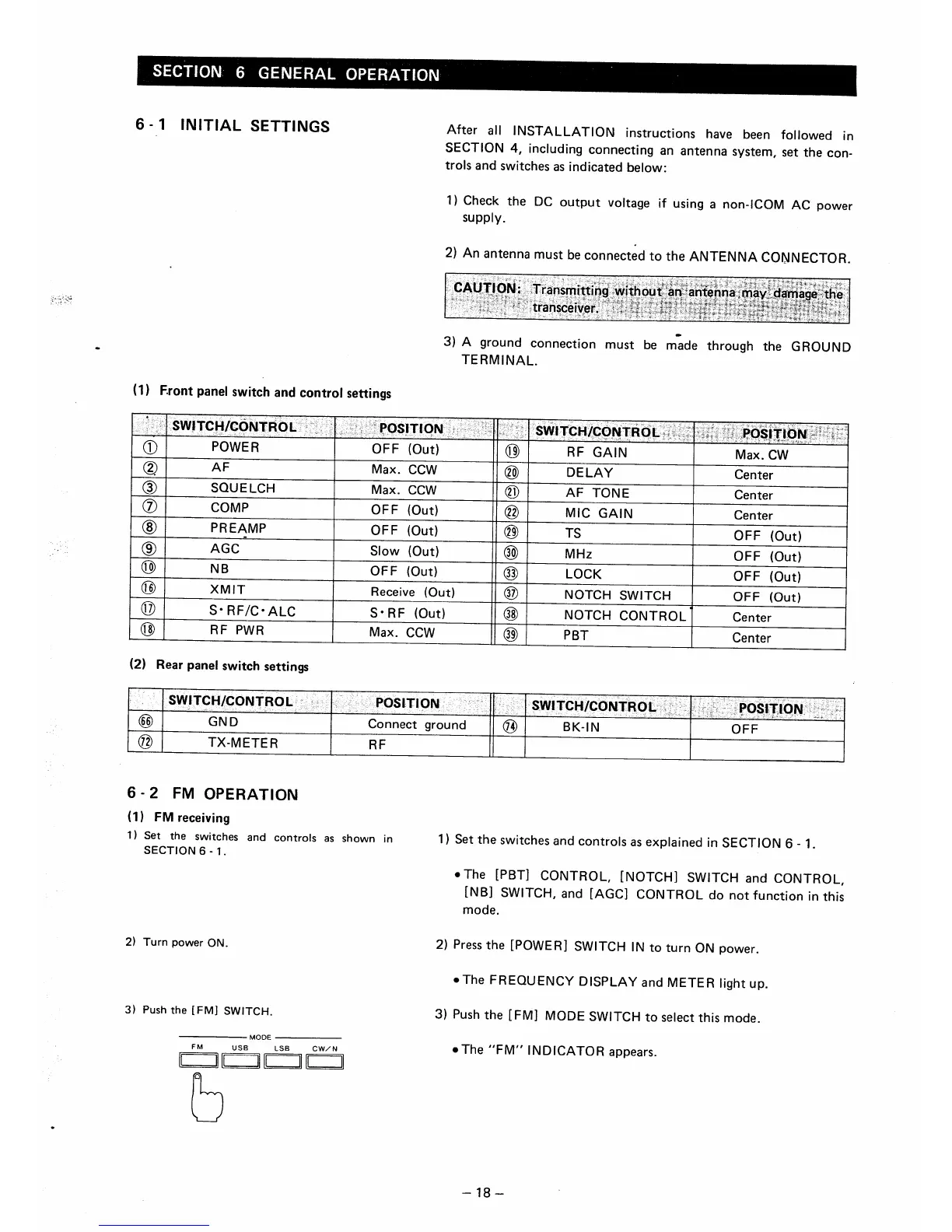 Icom IC-275A - SECTION 6 GENERAL OPERATION; INITIAL SETTINGS AND FM OPERATION