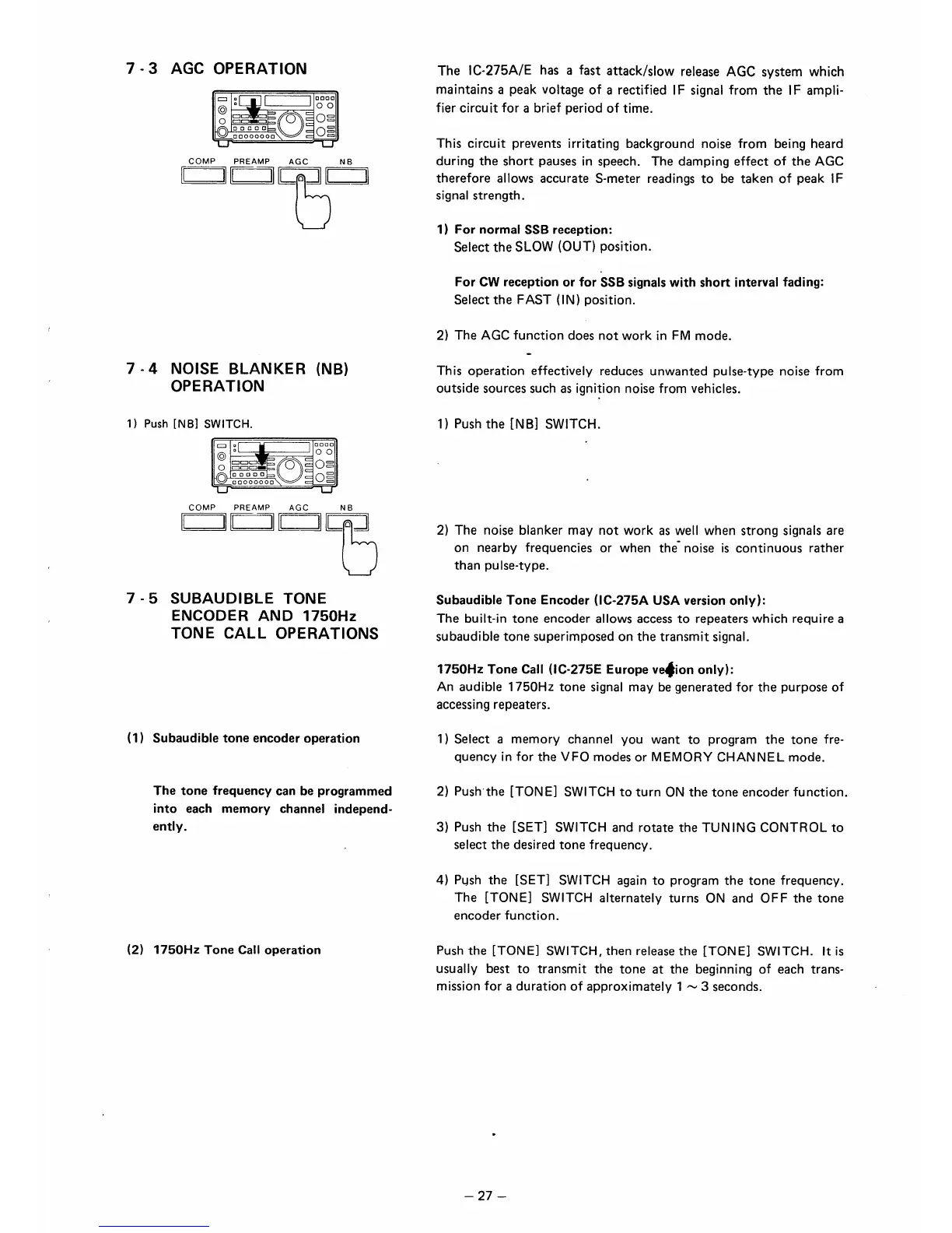 Icom IC-275A - NOISE BLANKER, TONE, AND DUPLEX OPERATIONS