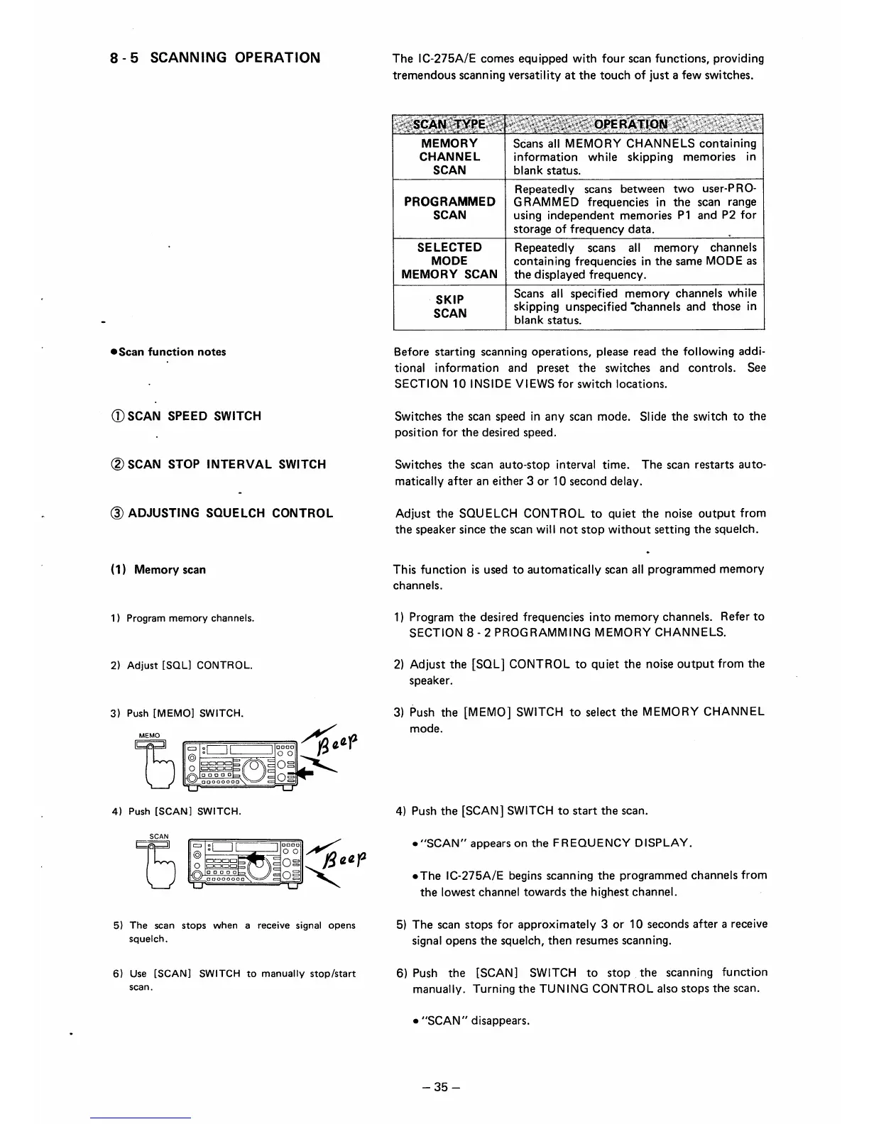 Icom IC-275A - SCANNING OPERATION BASICS; MEMORY SCANNING TYPES