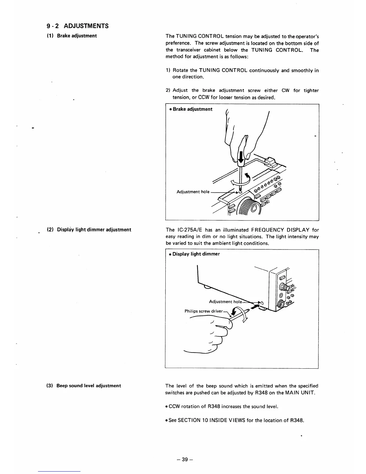 Icom IC-275A - CONTROL AND DISPLAY ADJUSTMENTS