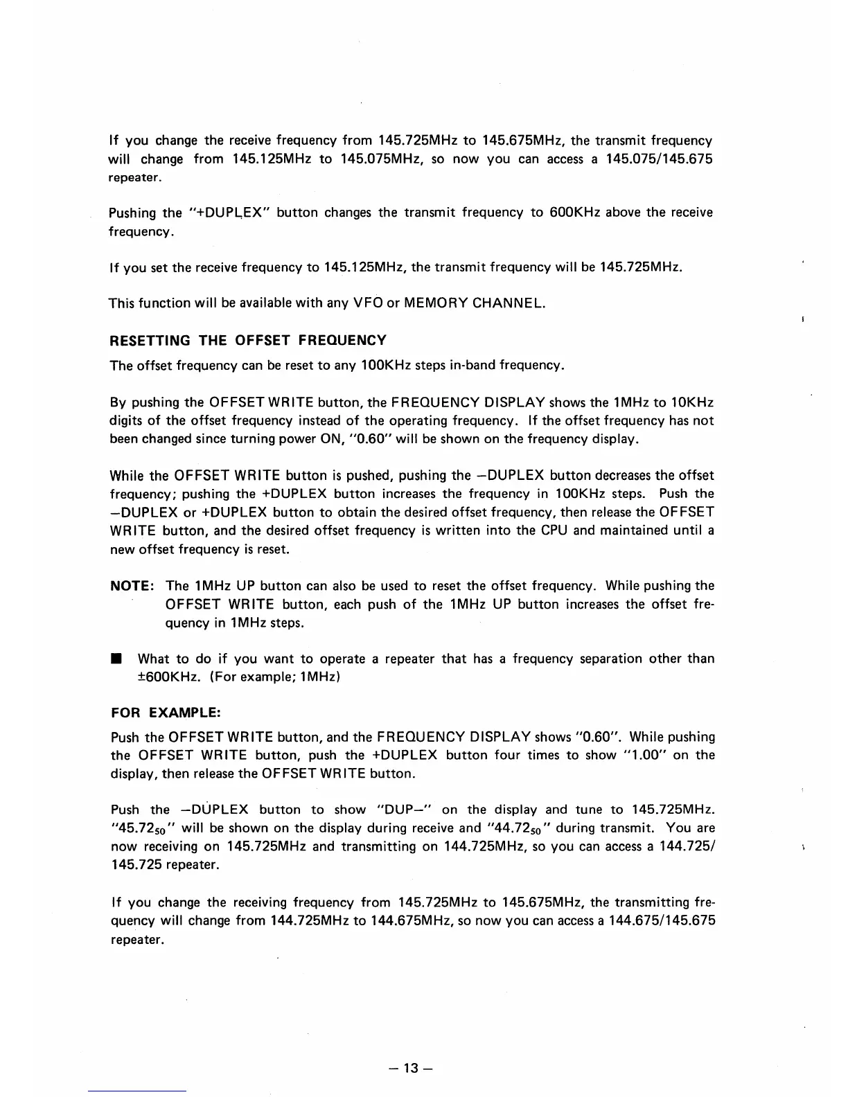 Icom IC-27H - RESETTING THE OFFSET FREQUENCY; OFFSET FREQUENCY ADJUSTMENT GUIDE