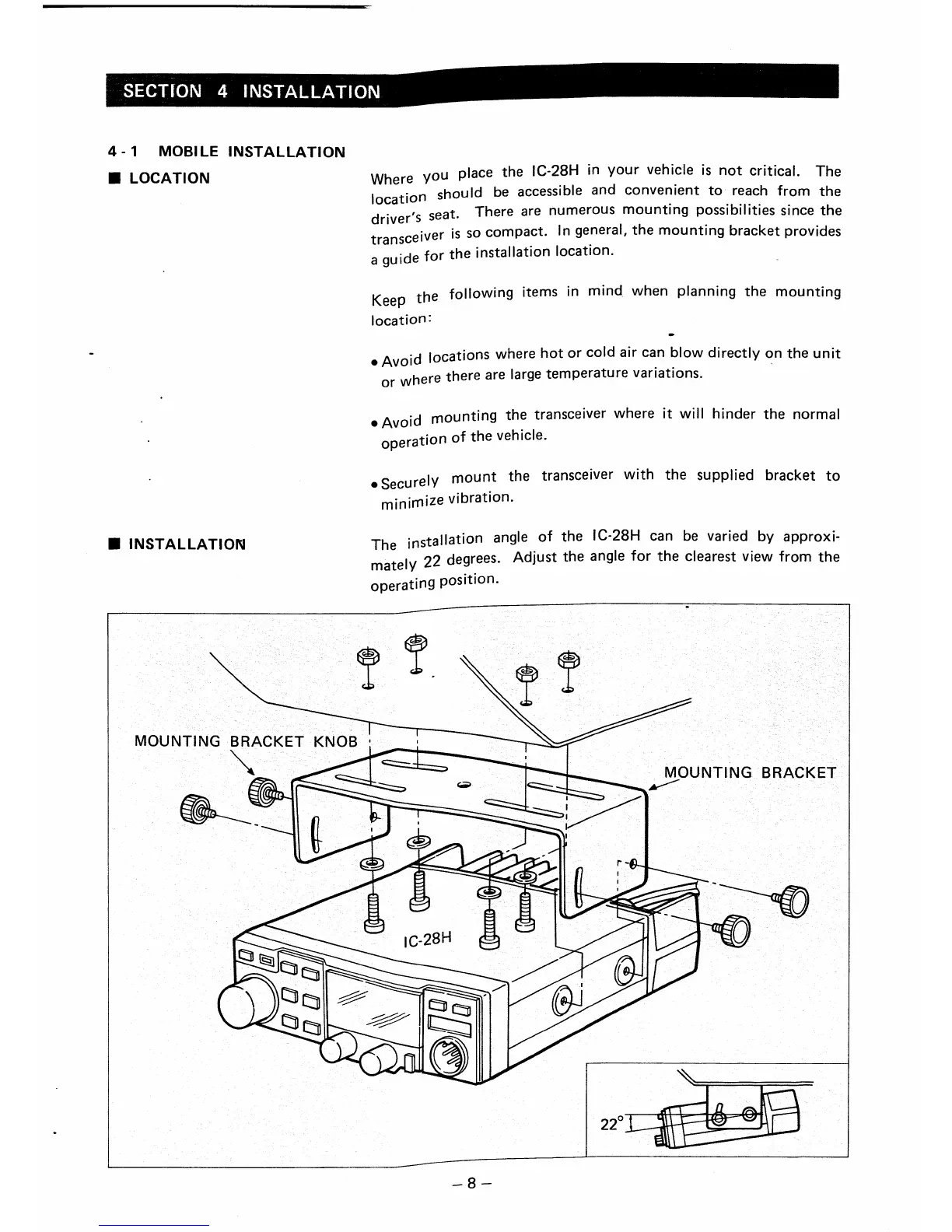 Icom IC-28H - Mobile Installation