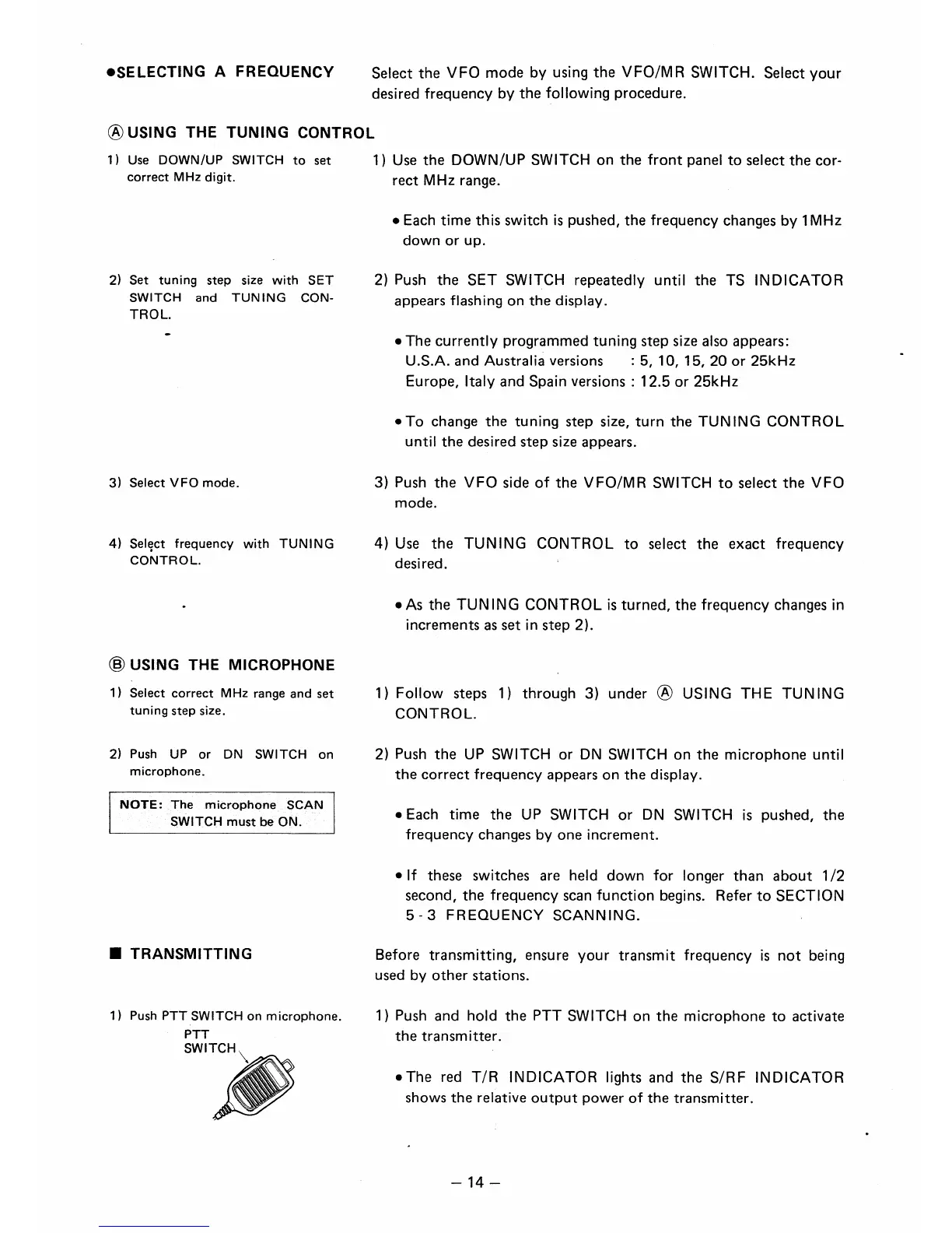 Icom IC-28H - Using the Tuning Control; Using the Microphone; Transmitting