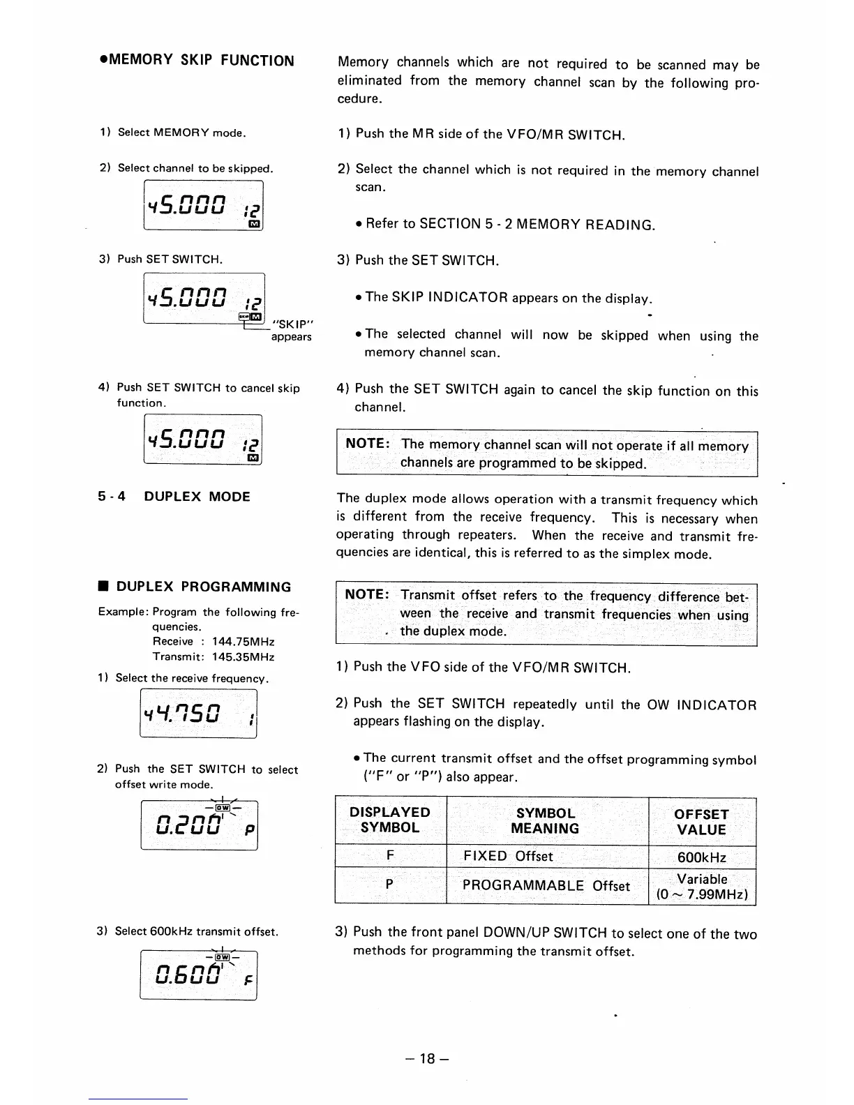 Icom IC-28H - Memory Skip Function; Duplex Programming