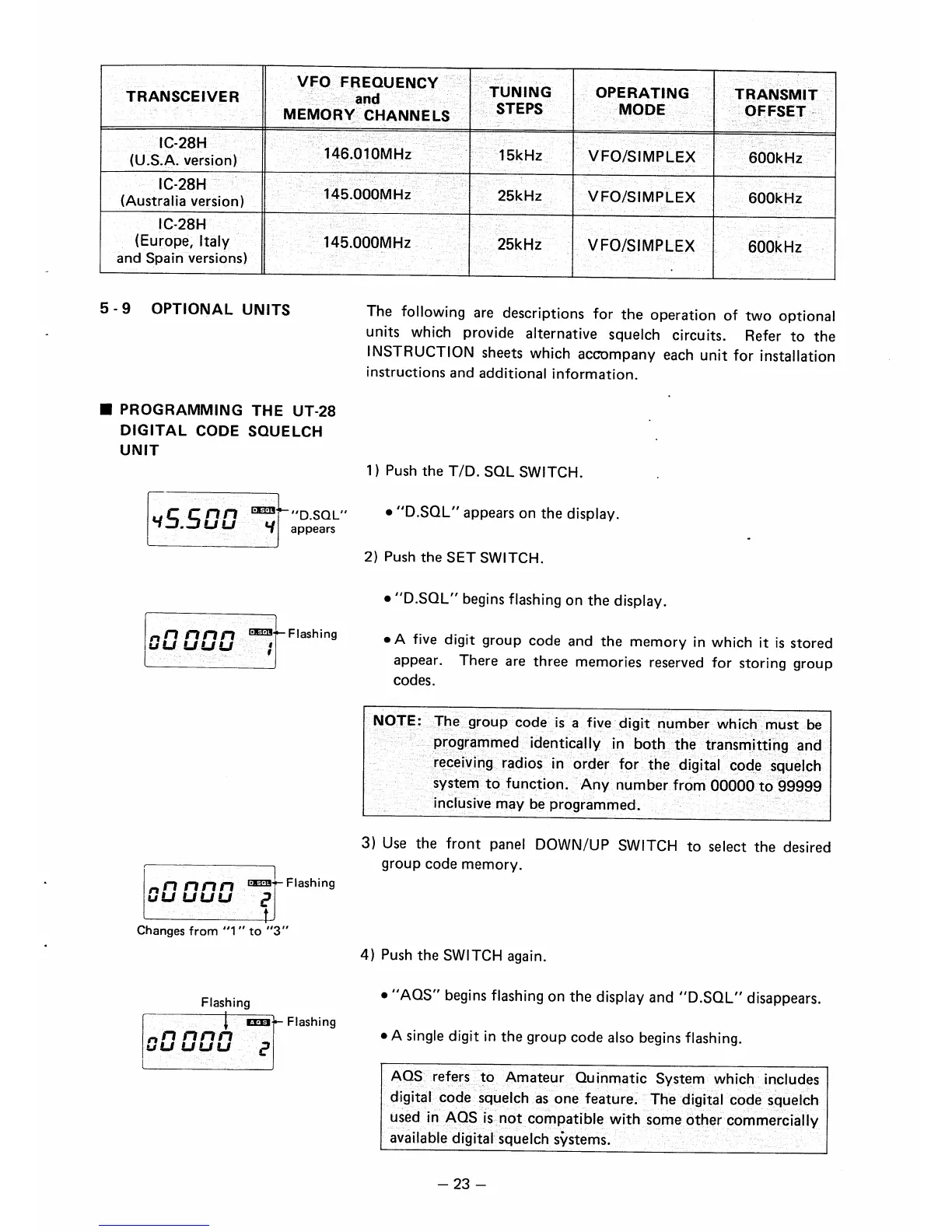 Icom IC-28H - Programming the UT-28 Digital Code Squelch Unit