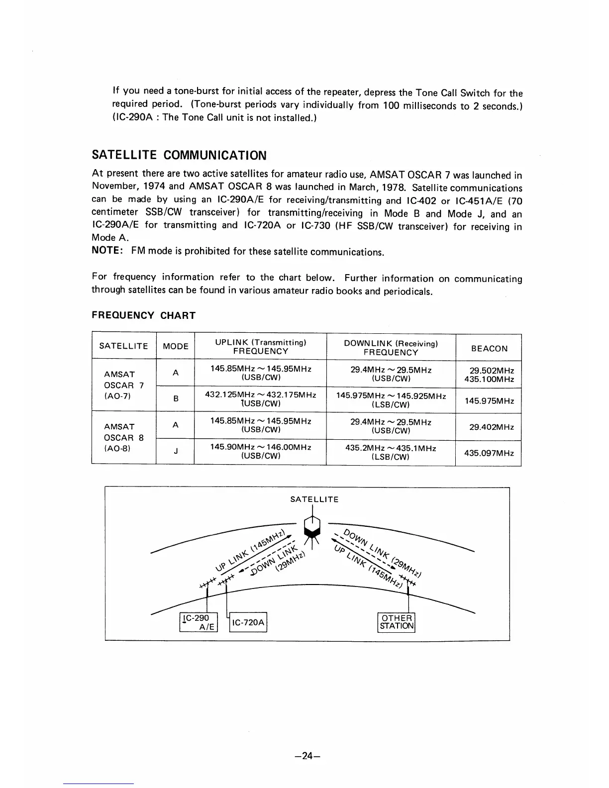 Icom IC-290A - Satellite Communication; Frequency Chart