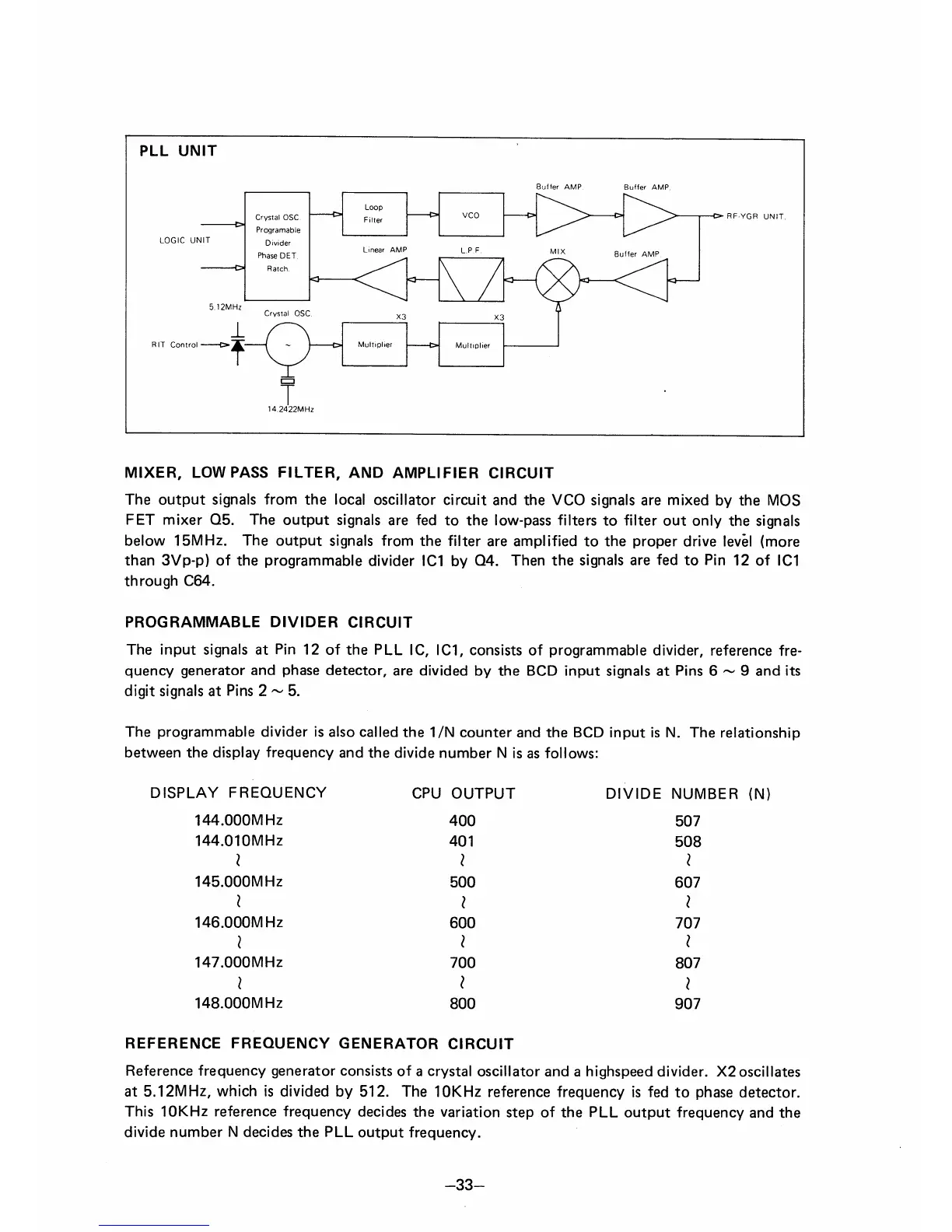Icom IC-290A - Mixer, Low Pass Filter, and Amplifier Circuit; Programmable Divider Circuit; Reference Frequency Generator Circuit
