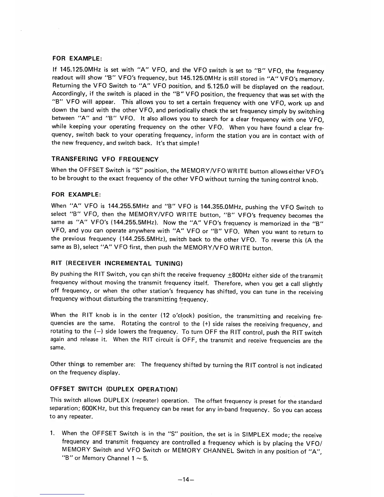 Icom IC-290E - VFO Frequency Transfer and RIT; Duplex Operation and Offset Settings