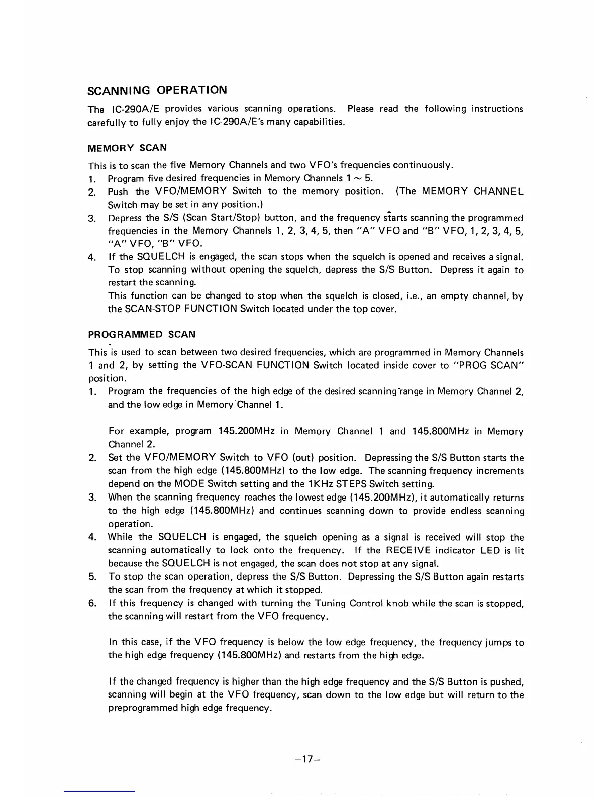 Icom IC-290E - Scanning Operation; Memory Scan; Programmed Scan