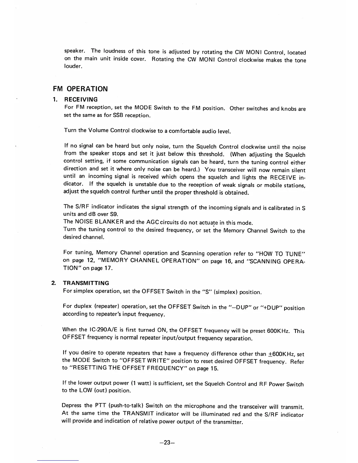 Icom IC-290E - FM Operation; FM Receiving Setup; FM Transmitting Procedures