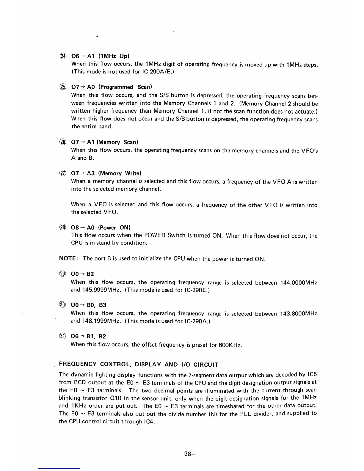 Icom IC-290E - CPU Control Function Flows (Continued); Frequency Control, Display and I;O Circuit
