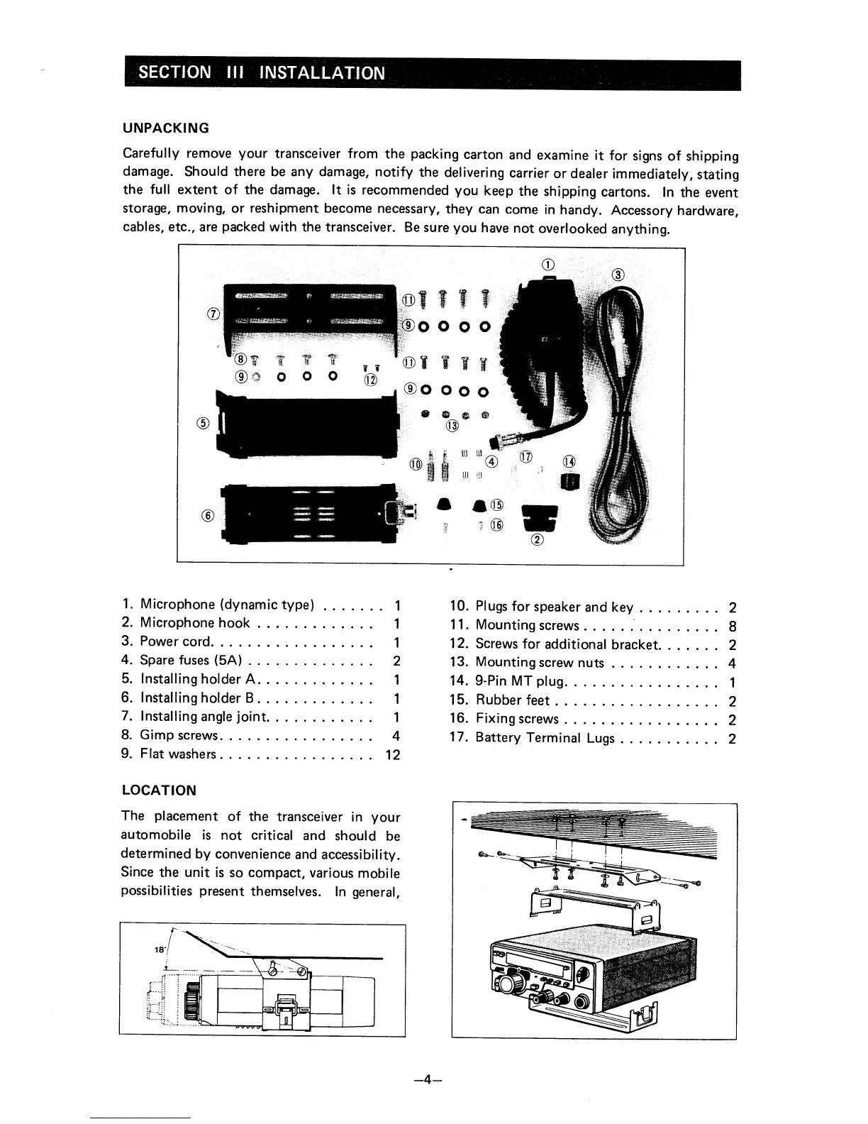 Icom IC-290E - Section III Installation; Unpacking; Location