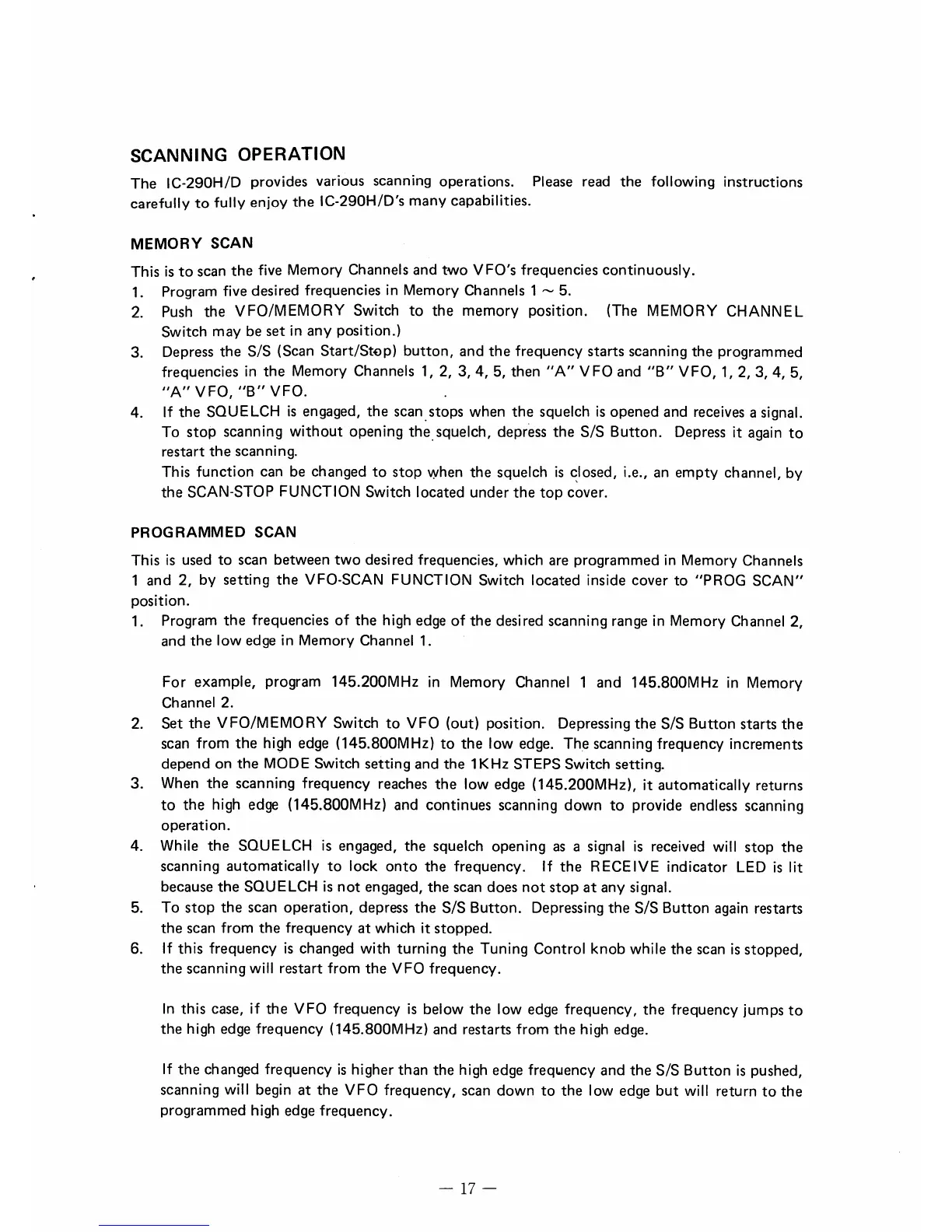 Icom IC-290H/D - SCANNING OPERATIONS