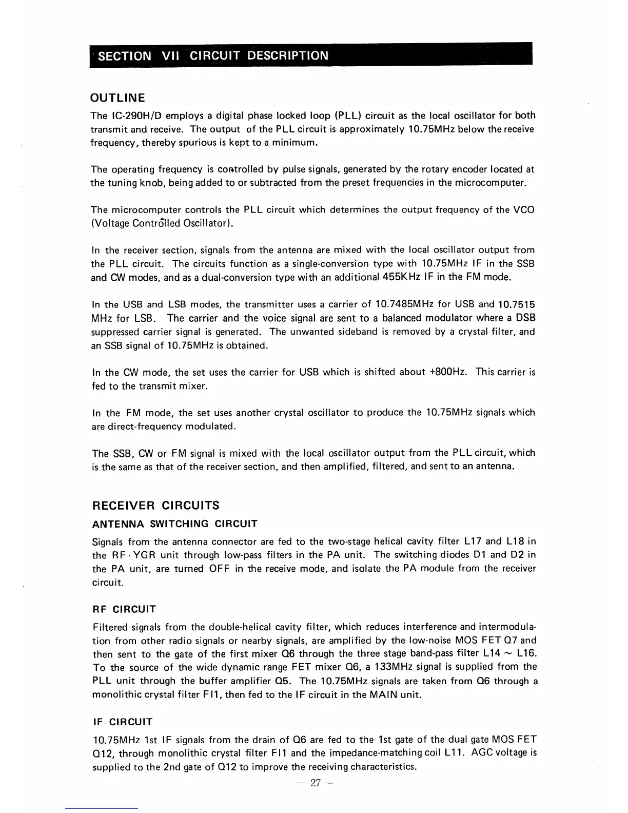Icom IC-290H/D - SECTION VII CIRCUIT DESCRIPTION; CIRCUIT ARCHITECTURE AND RECEIVER CIRCUITS