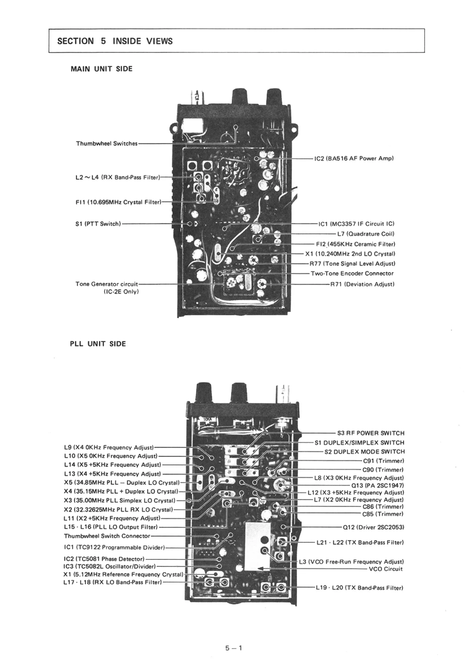 Icom IC-2E - Inside Views; Main Unit Side; PLL Unit Side