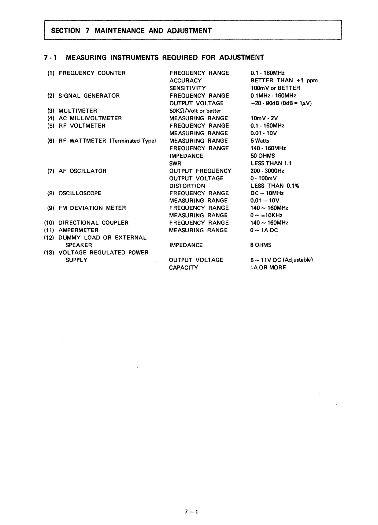 Icom IC-2E - Maintenance and Adjustment; Measuring Instruments Required for Adjustment