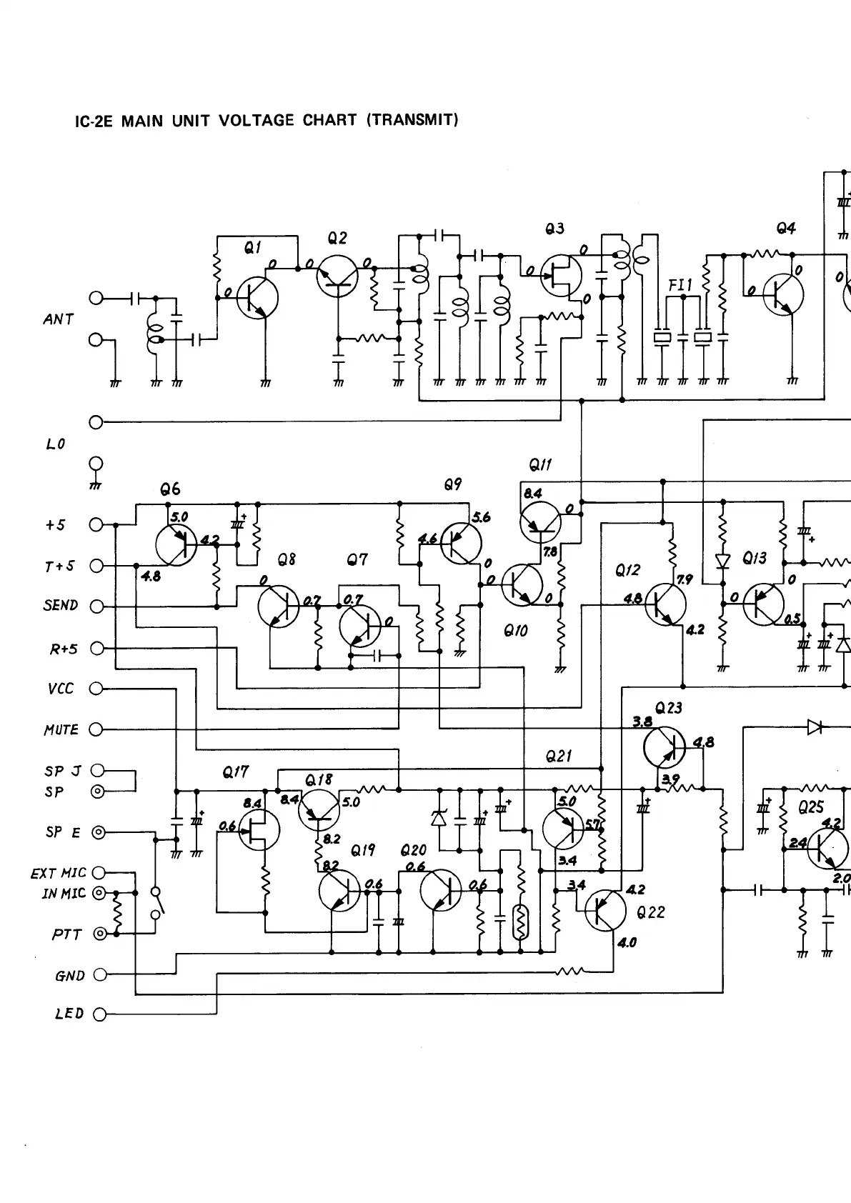 Icom IC-2E - IC-2 E Main Unit Voltage Chart ( Transmit )