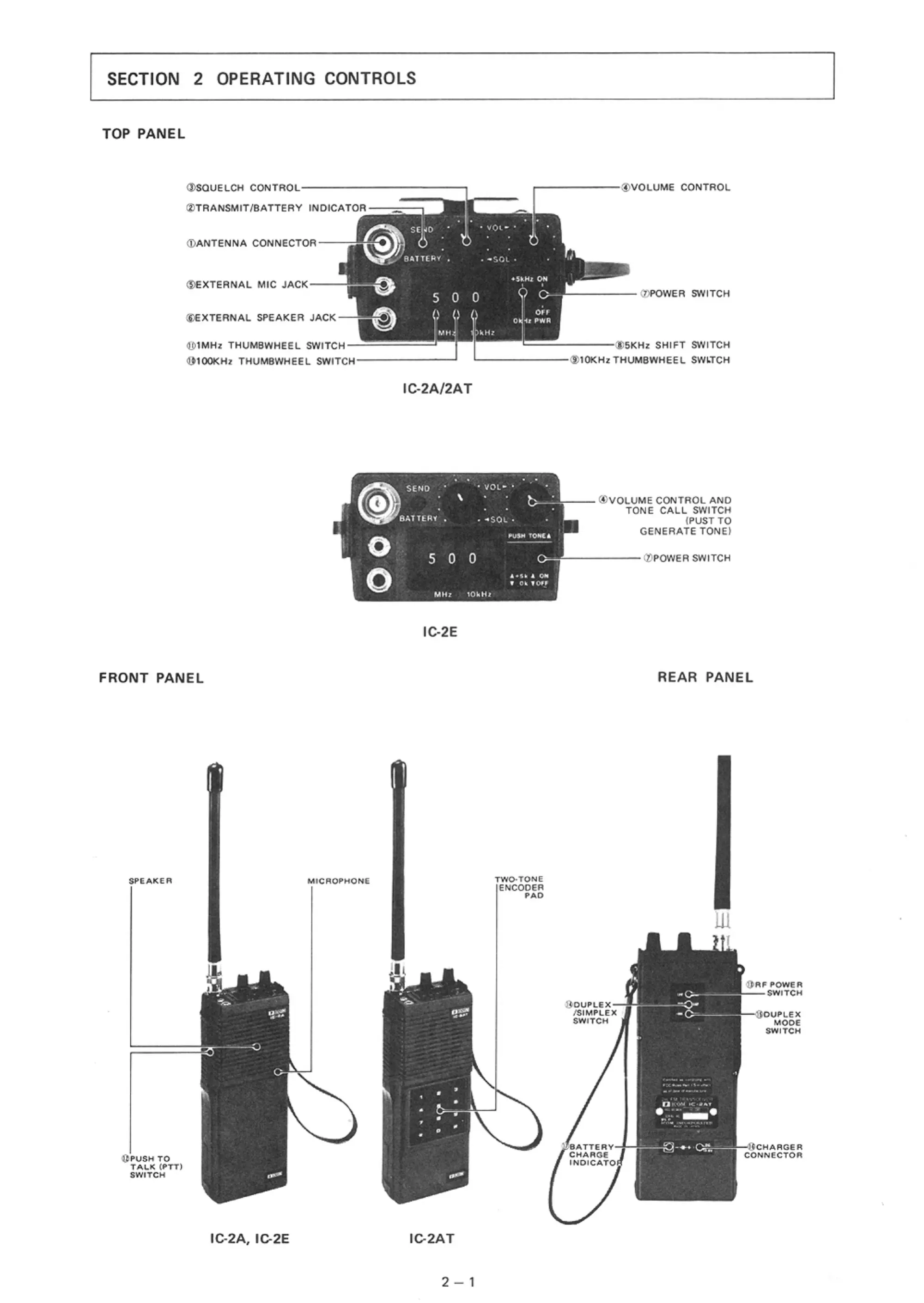 Icom IC-2E - Operating Controls; Top Panel; Front Panel