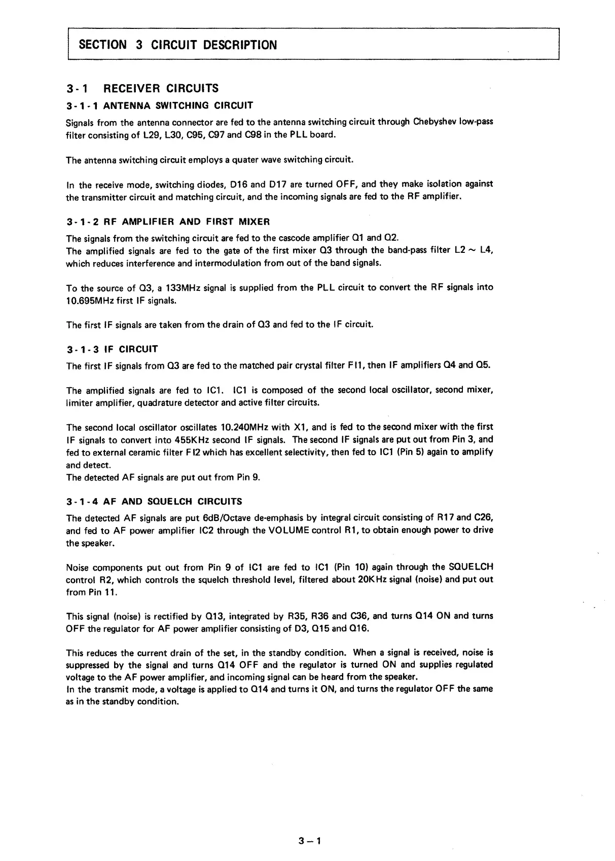 Icom IC-2E - Circuit Description; Receiver Circuits; Antenna Switching Circuit; RF Amplifier and First Mixer