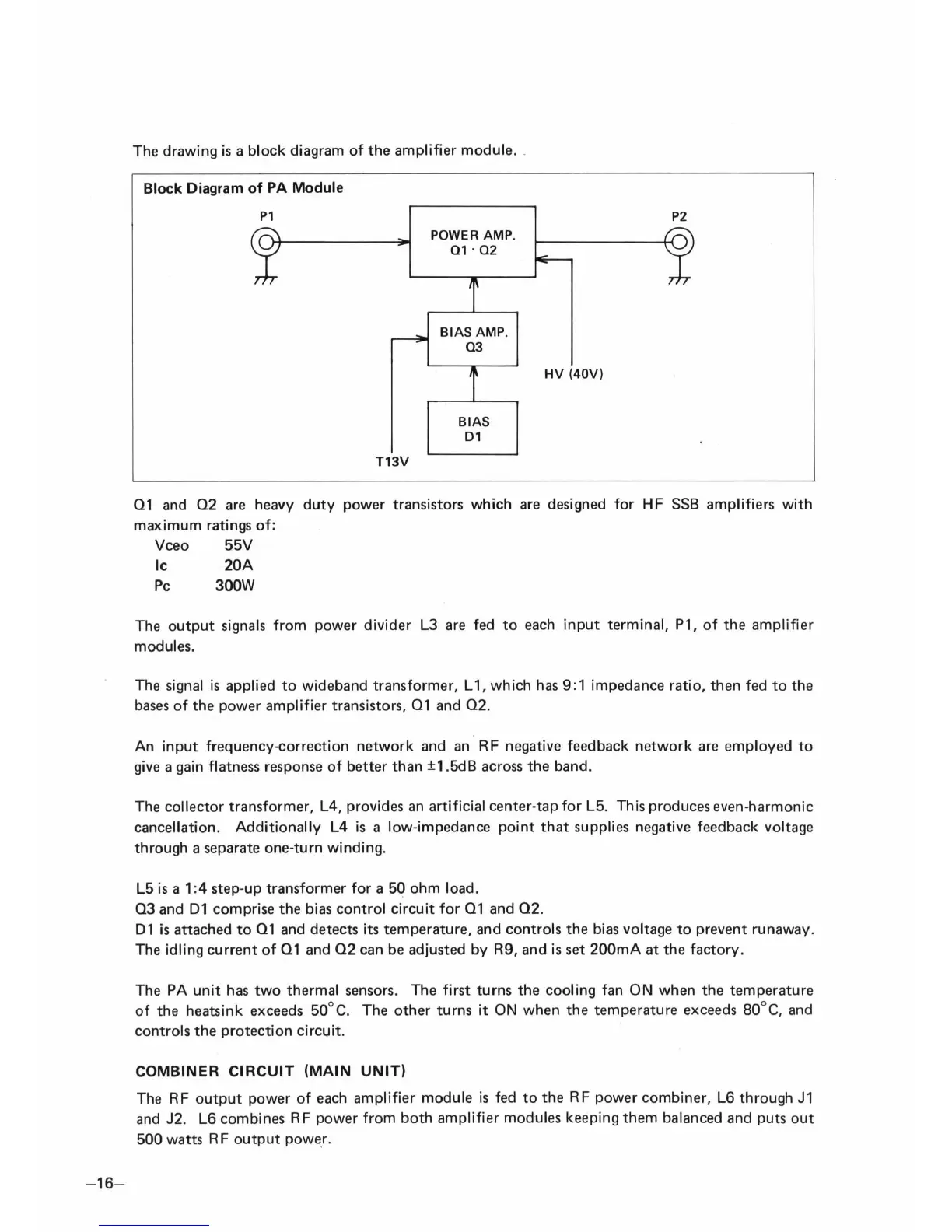 Icom IC-2KL - Combiner Circuit (Main Unit); Block Diagram of PA Module