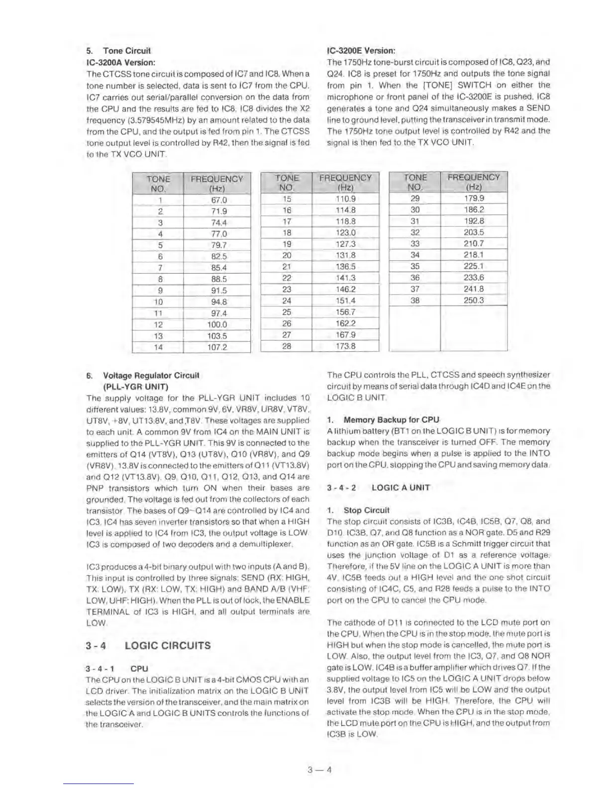 Icom IC-3200A/E - Tone Circuit; Logic Circuits; Voltage Regulator Circuit; Cpu