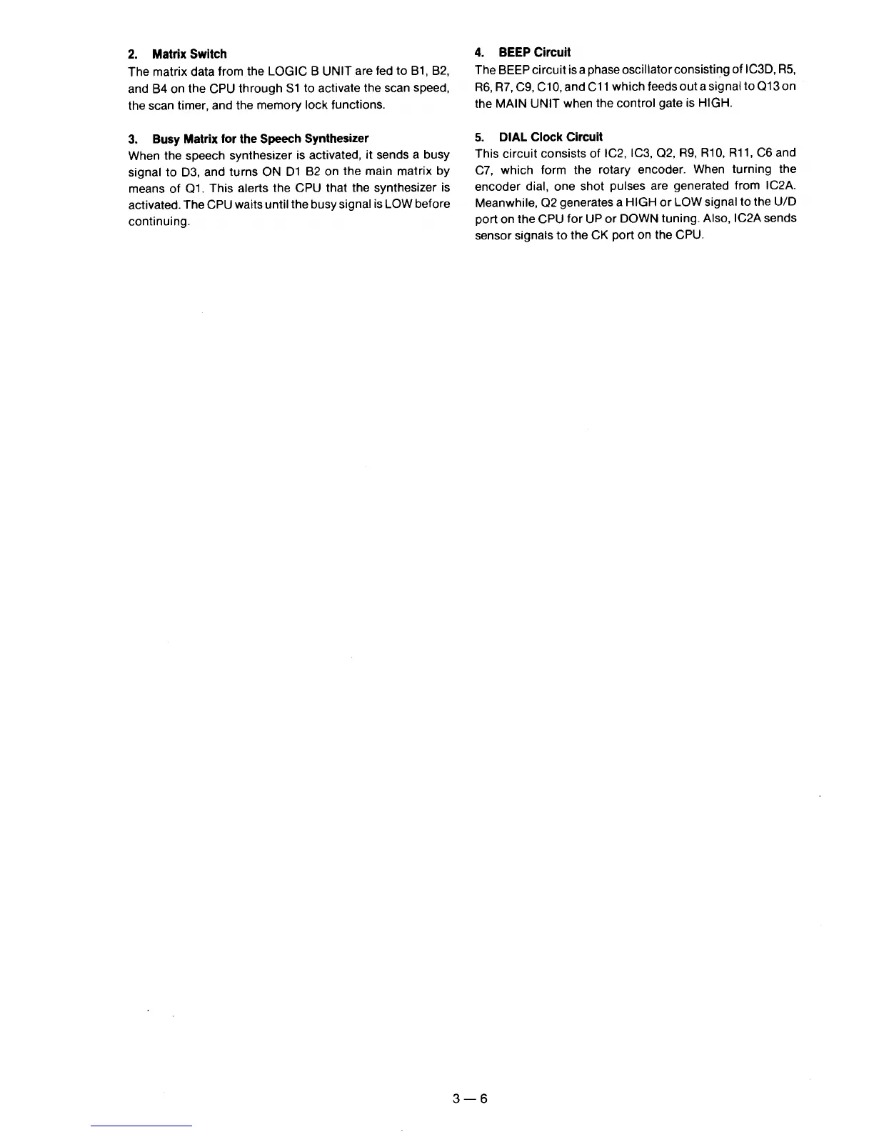 Icom IC-3200A/E - Matrix Switch; Busy Matrix for the Speech Synthesizer; BEEP Circuit; DIAL Clock Circuit