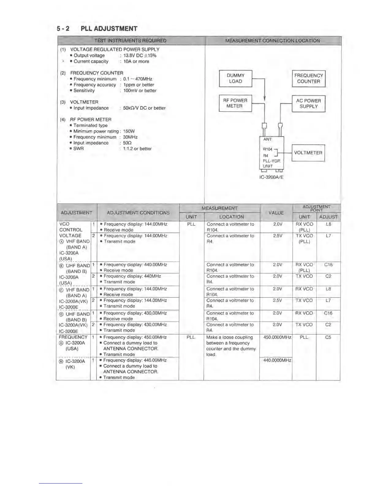 Icom IC-3200A/E - PLL Adjustment; Voltage Regulated Power Supply; Frequency Counter; Voltmeter