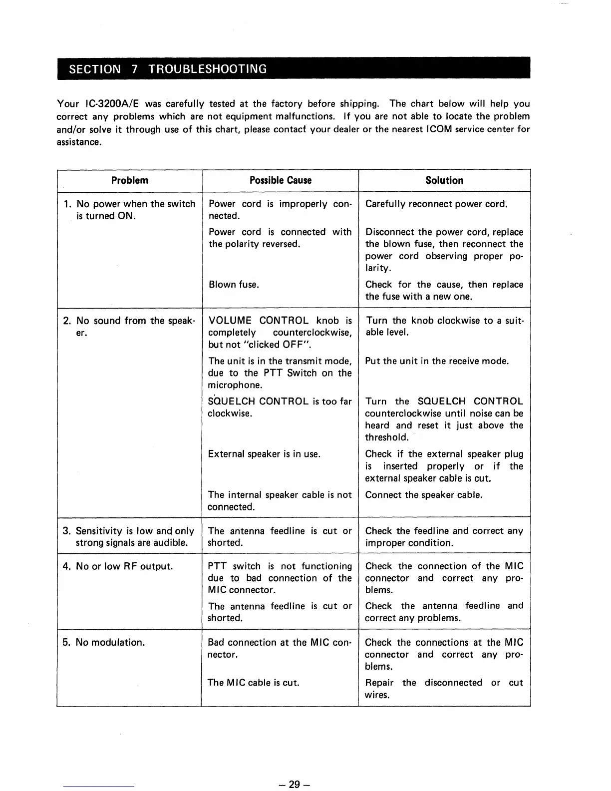 Icom IC-3200E - SECTION 7 TROUBLESHOOTING