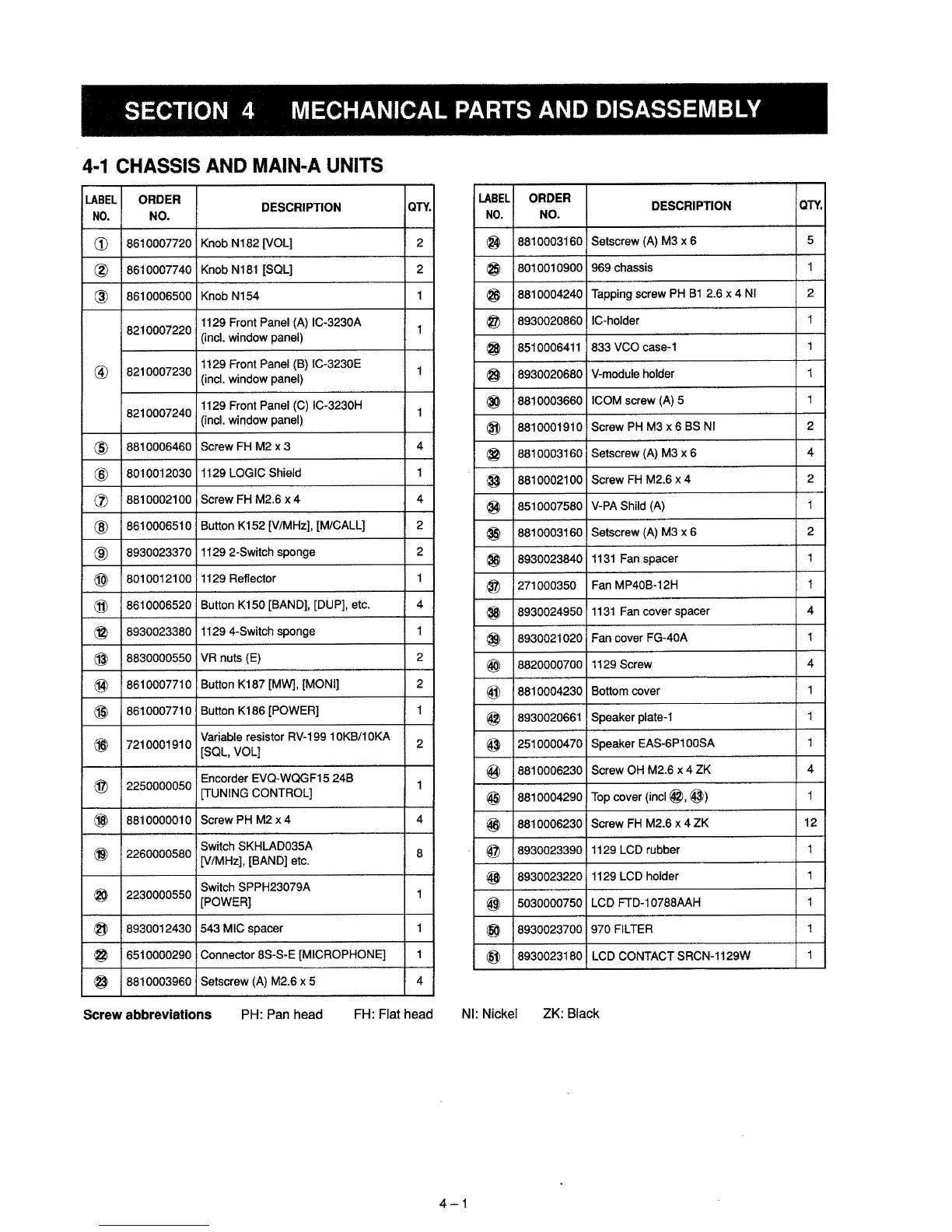Icom IC-3230H - Mechanical Parts and Disassembly; Chassis and Main-A Units
