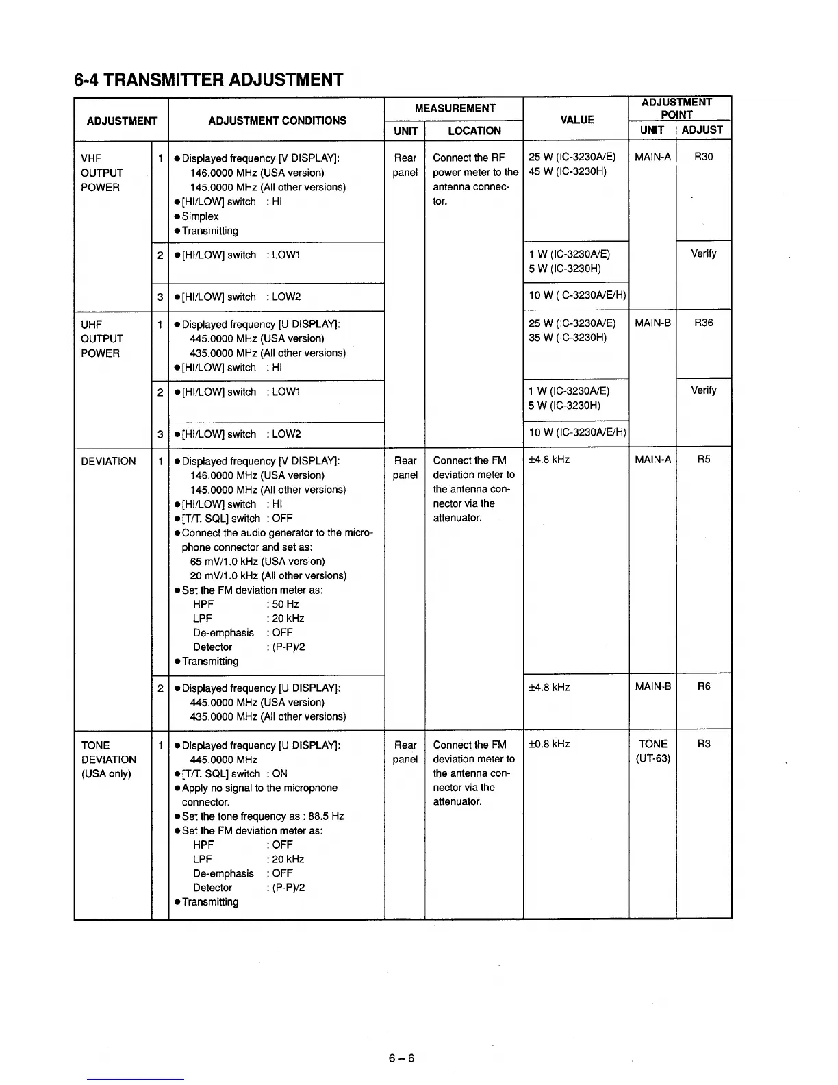 Icom IC-3230H - Transmitter Adjustment