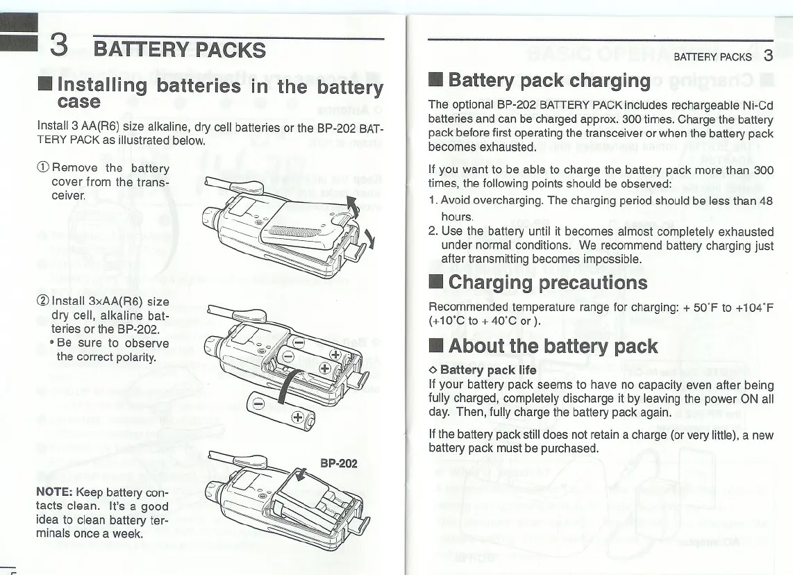 The optional BP-202 BATTERY PACKincludes rechargeable Ni-Cd