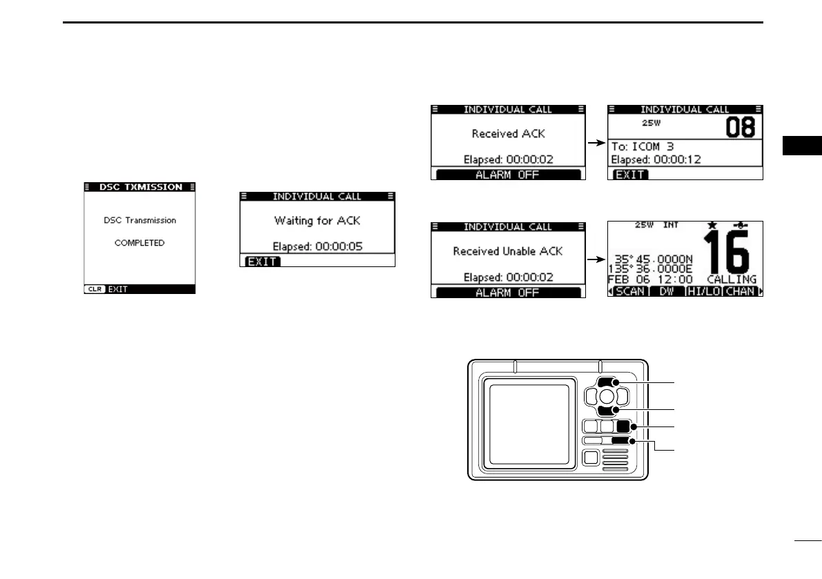 • The transceiver stands by on Channel 70 until an acknowledge-