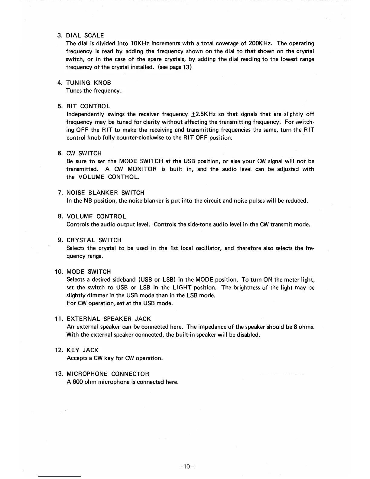 Icom IC-402 - RIT CONTROL; CW SWITCH; NOISE BLANKER SWITCH; CRYSTAL SWITCH