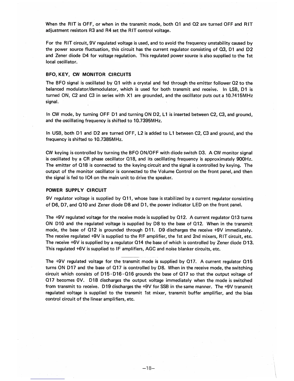 Icom IC-402 - BFO, KEY, CW MONITOR CIRCUITS; POWER SUPPLY CIRCUIT