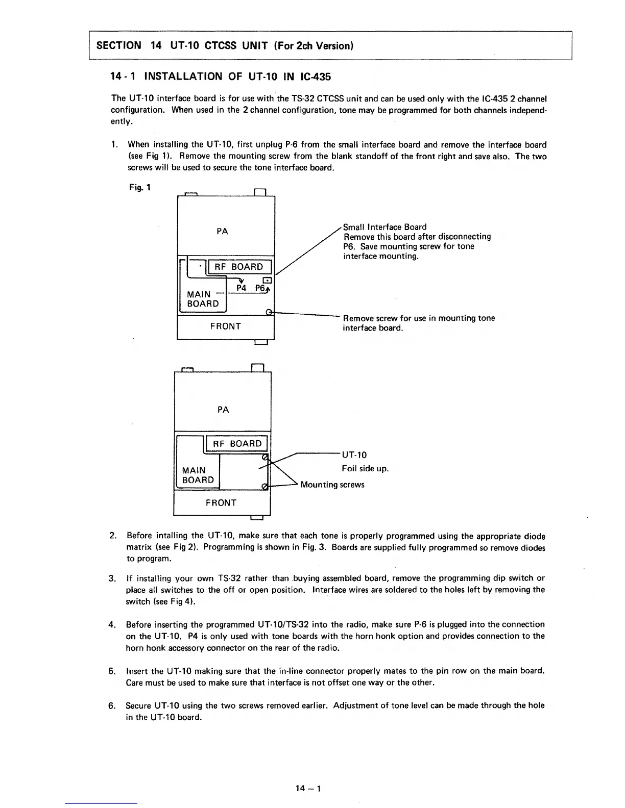 Icom IC-435 - Section 14 UT-10 CTCSS Unit (For 2 ch Version); Installation of UT-10