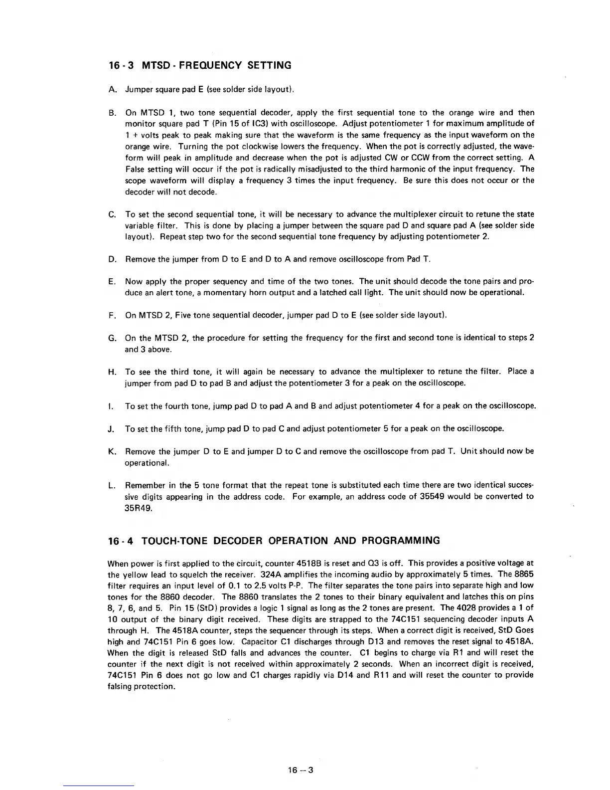 Icom IC-435 - MTSD Frequency Setting; Tone Decoder Operation and Programming