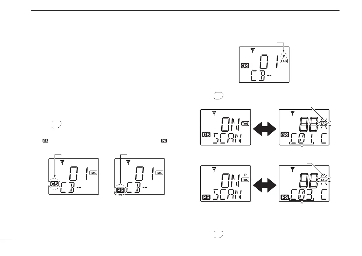 • “ ” appears when the group scan is selected, and “ ” ap-