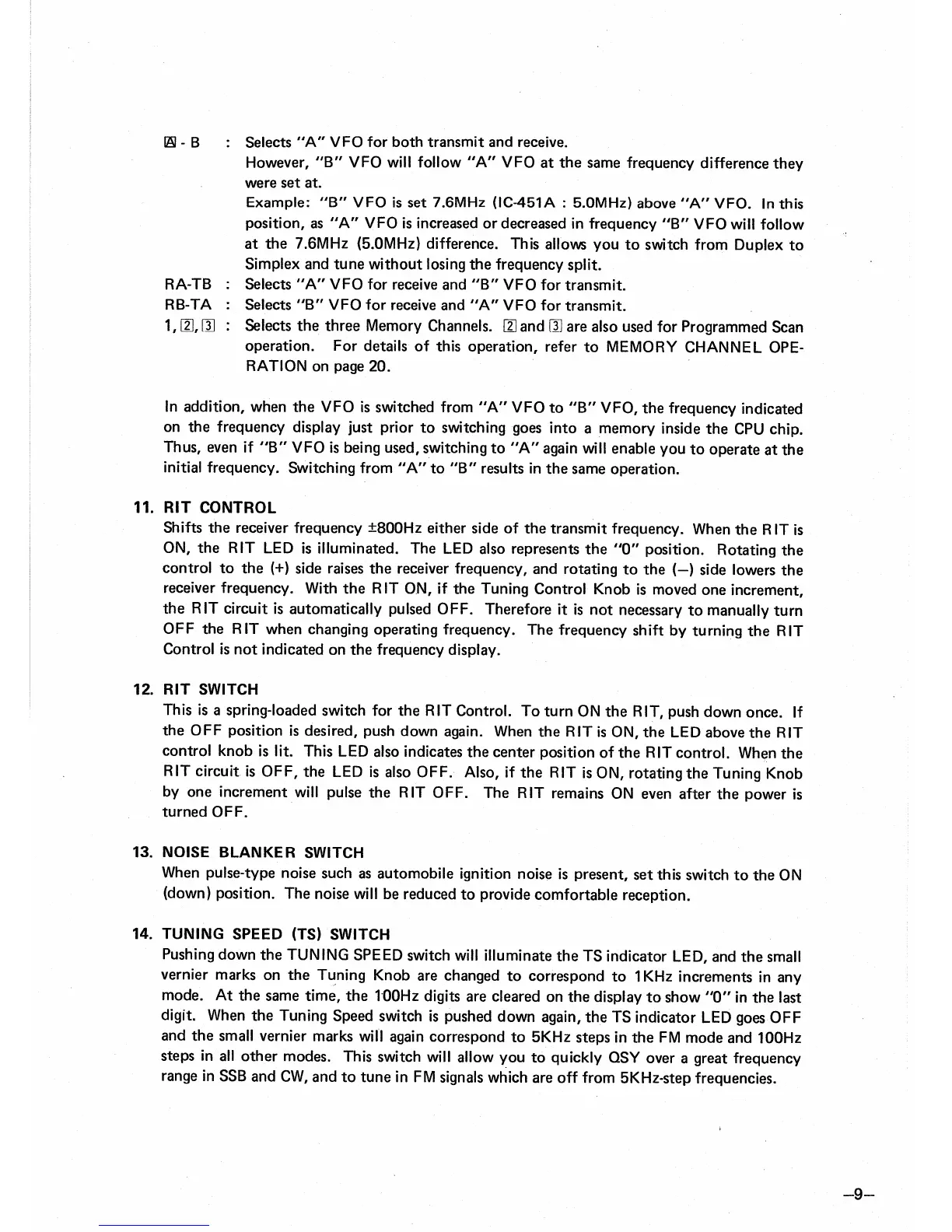 Icom IC-451A - RIT Control; RIT Switch; Noise Blanker Switch; Tuning Speed Switch