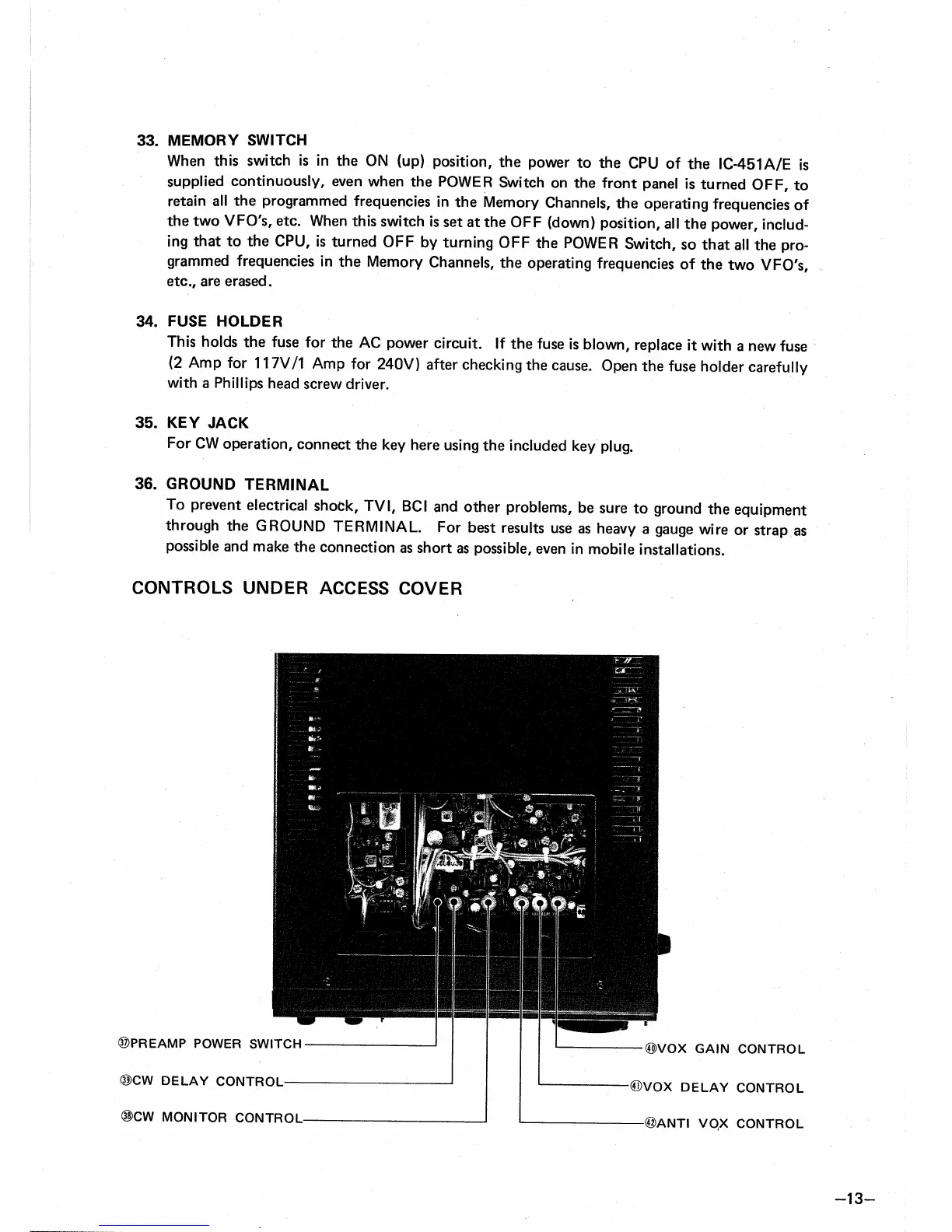 Icom IC-451A - Memory Switch; Fuse Holder; Key Jack; Ground Terminal