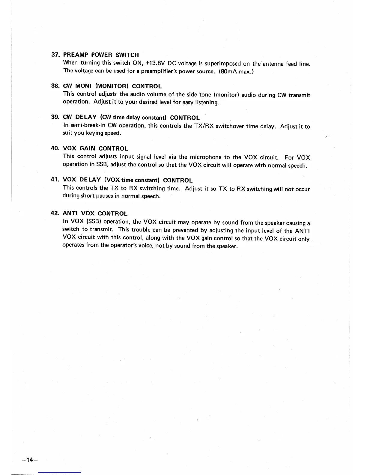 Icom IC-451A - Preamp Power Switch; CW Moni Control; Vox Gain Control; Anti Vox Control