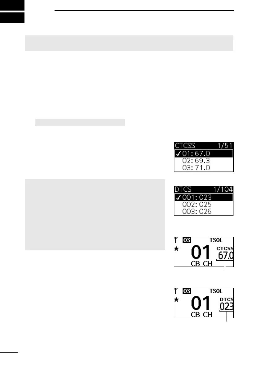 2. Select “CTCSS” or “DTCS,” and then push [►] or