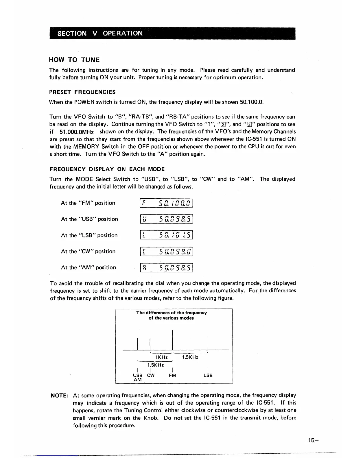 Icom IC-551 - Section V Operation; Tuning and Frequency Management