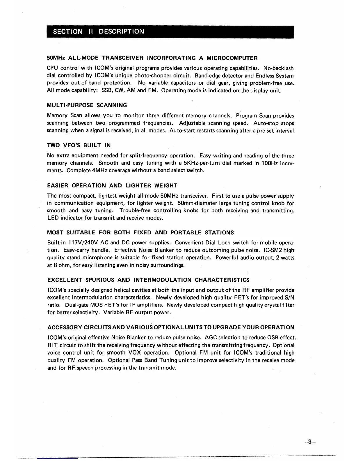 Icom IC-551 - Section II Description; Core Features and Microcomputer Control; Design and Performance Highlights; Optional Units and Upgrades